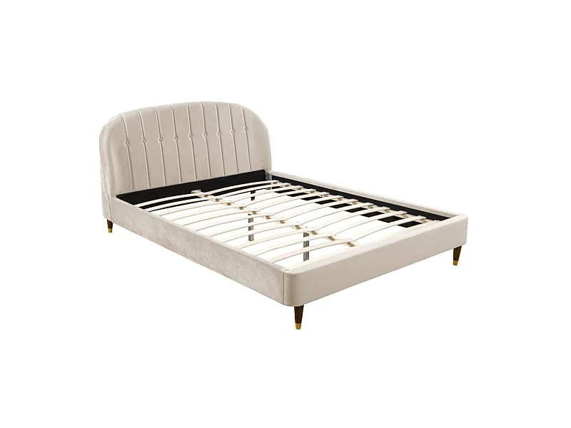 Lit Velours Design Cadre De Lit Mia - Couleurs - Velours Beige, Tailles - 160x200