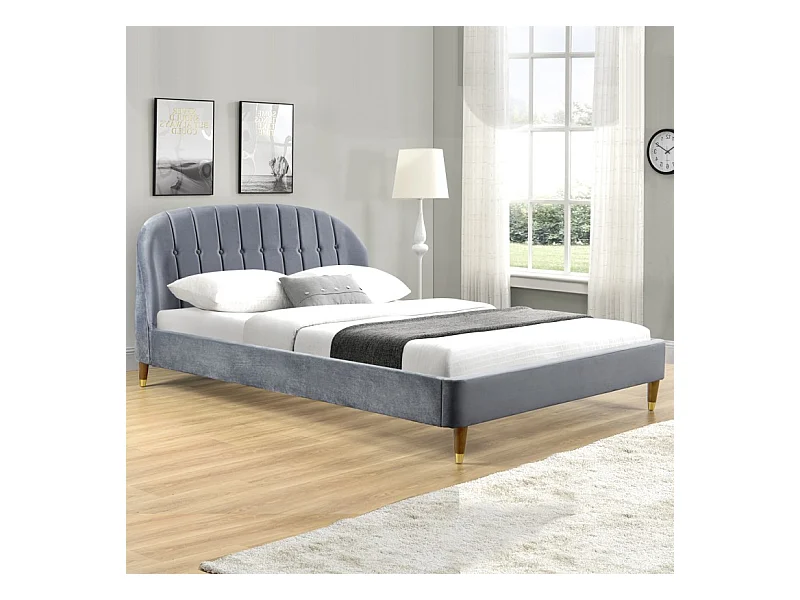 Lit Velours Design Cadre De Lit Mia - Couleurs - Velours Gris, Tailles - 140x190