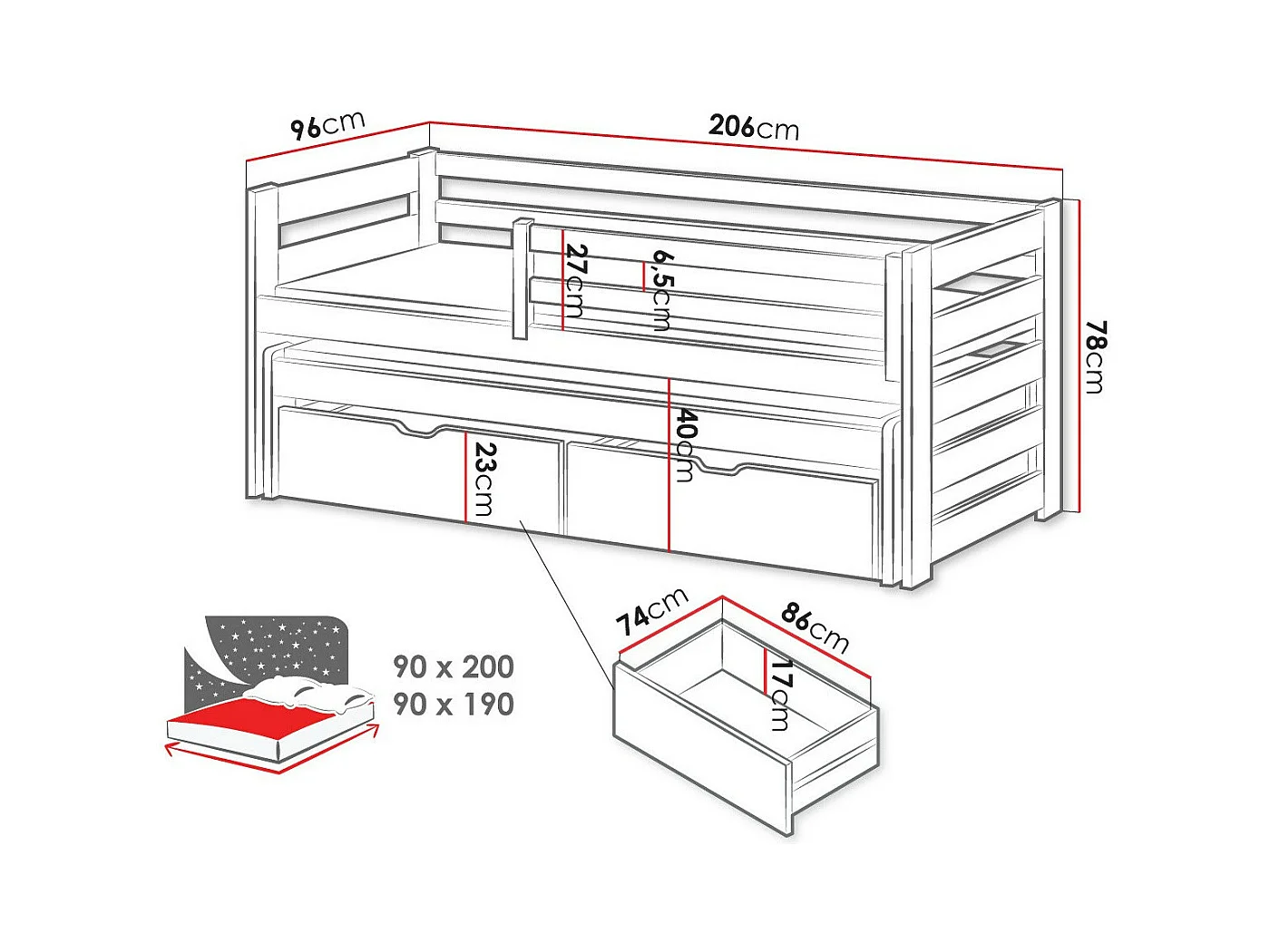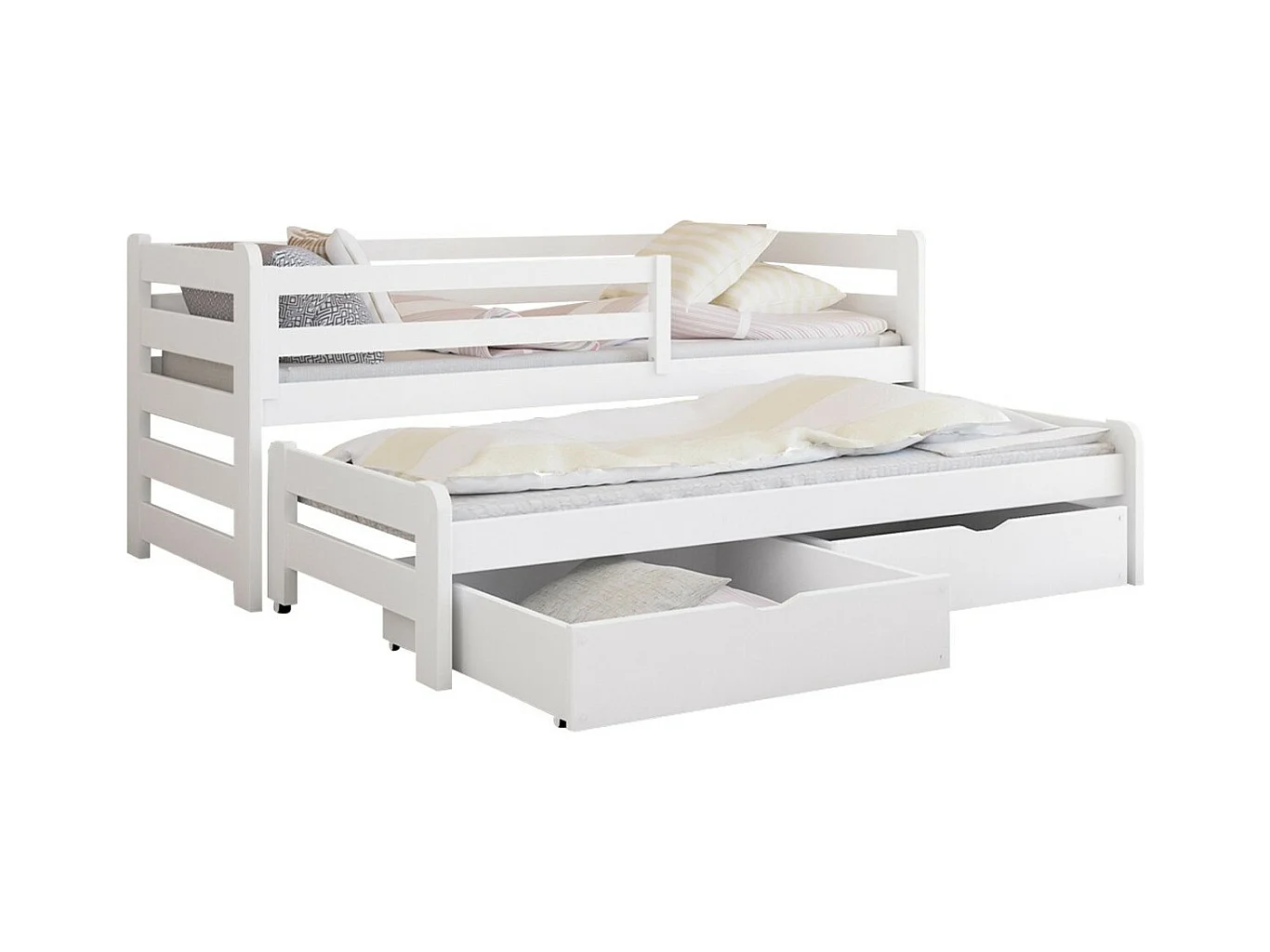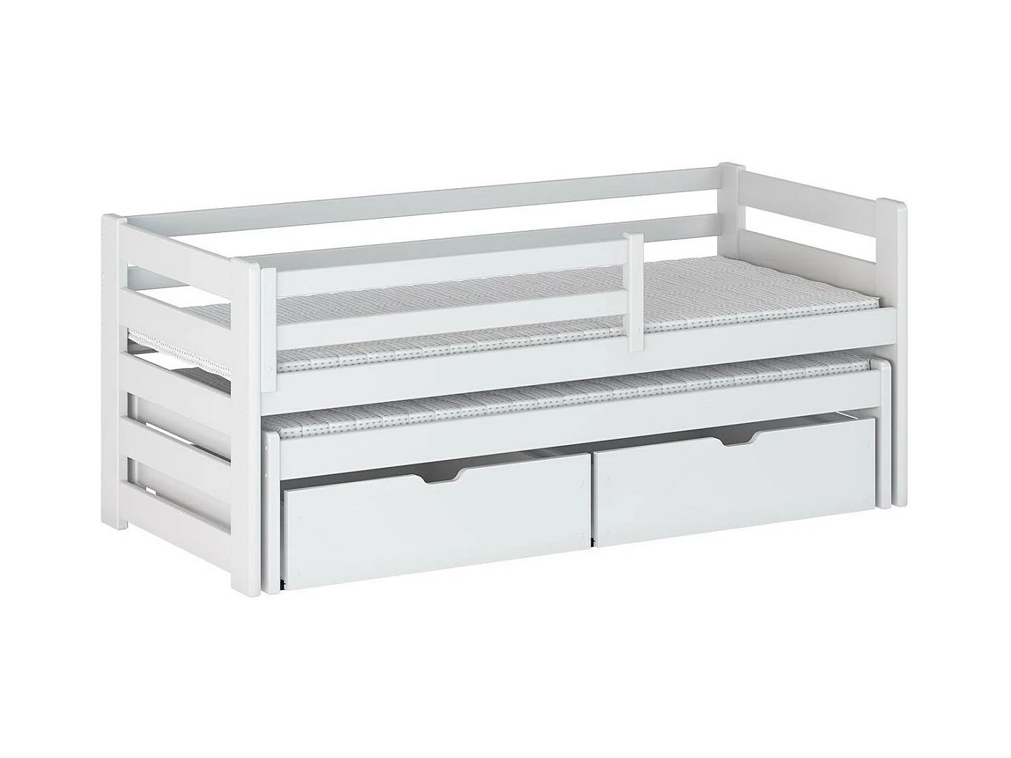 Lit Vista 113, Simple avec un lit gigogne supplémentaire, Unique, Blanc, 90x200|90x190,