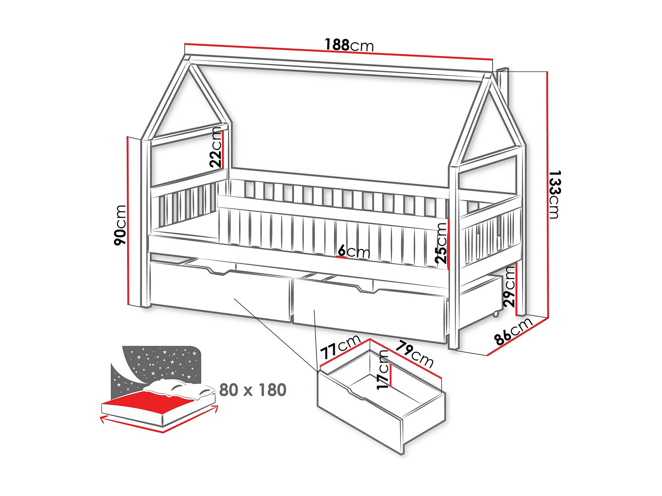 Lit Vista 116, Unique, Brun clair, 80x180, Bois, Disponible, 86x188x133cm