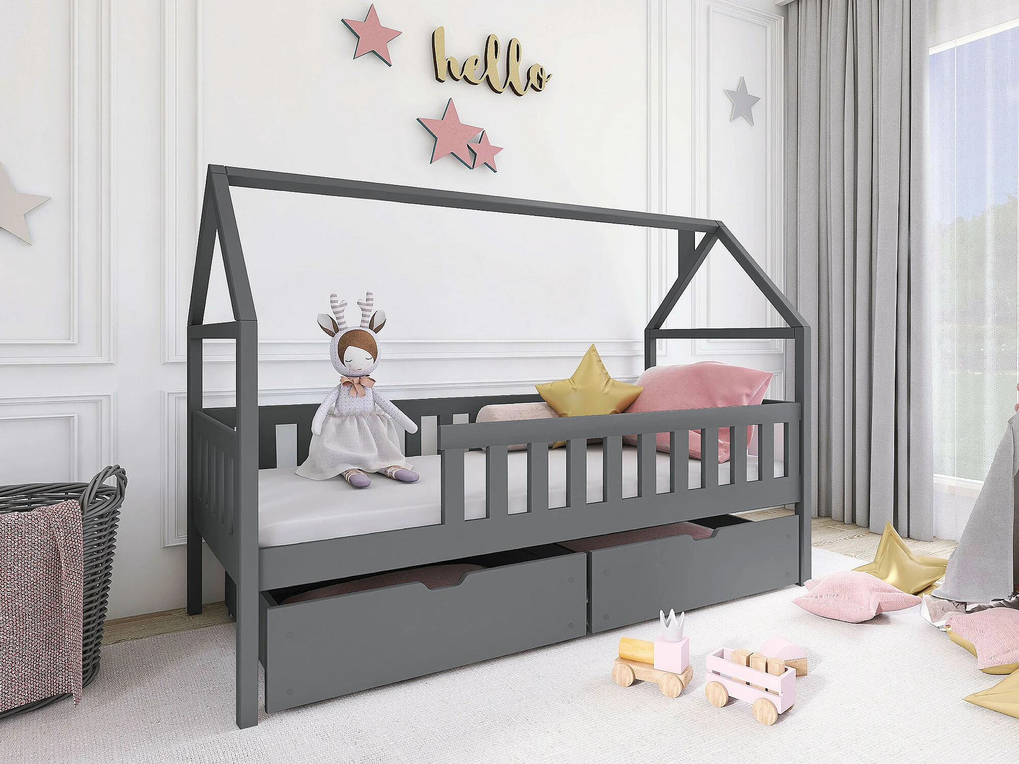 Lit Vista 116, Unique, Gris, 80x200, Bois, Disponible, 86x208x133cm