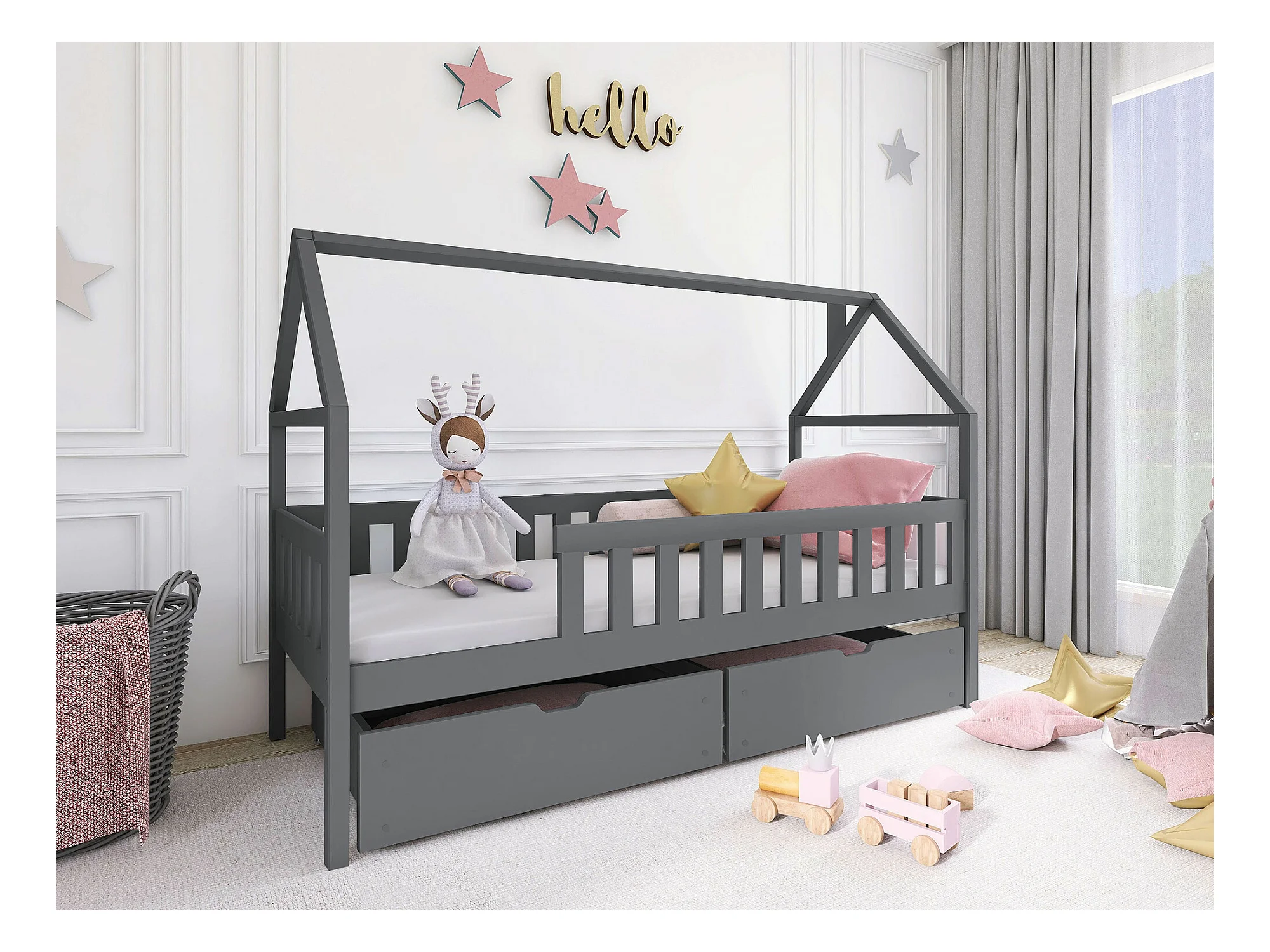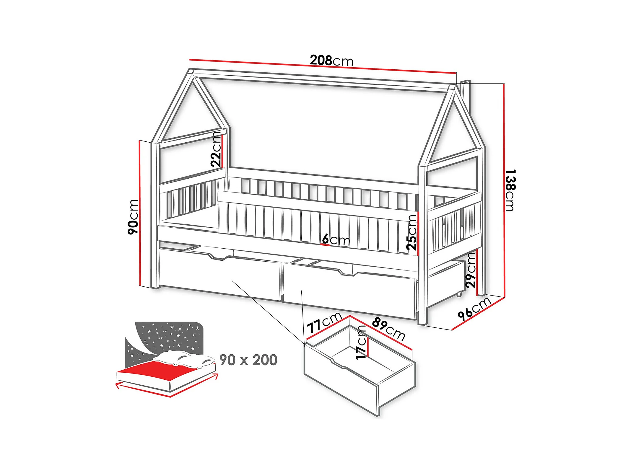 Lit Vista 116, Unique, Gris, 90x200, Bois, Disponible, 96x208x138cm