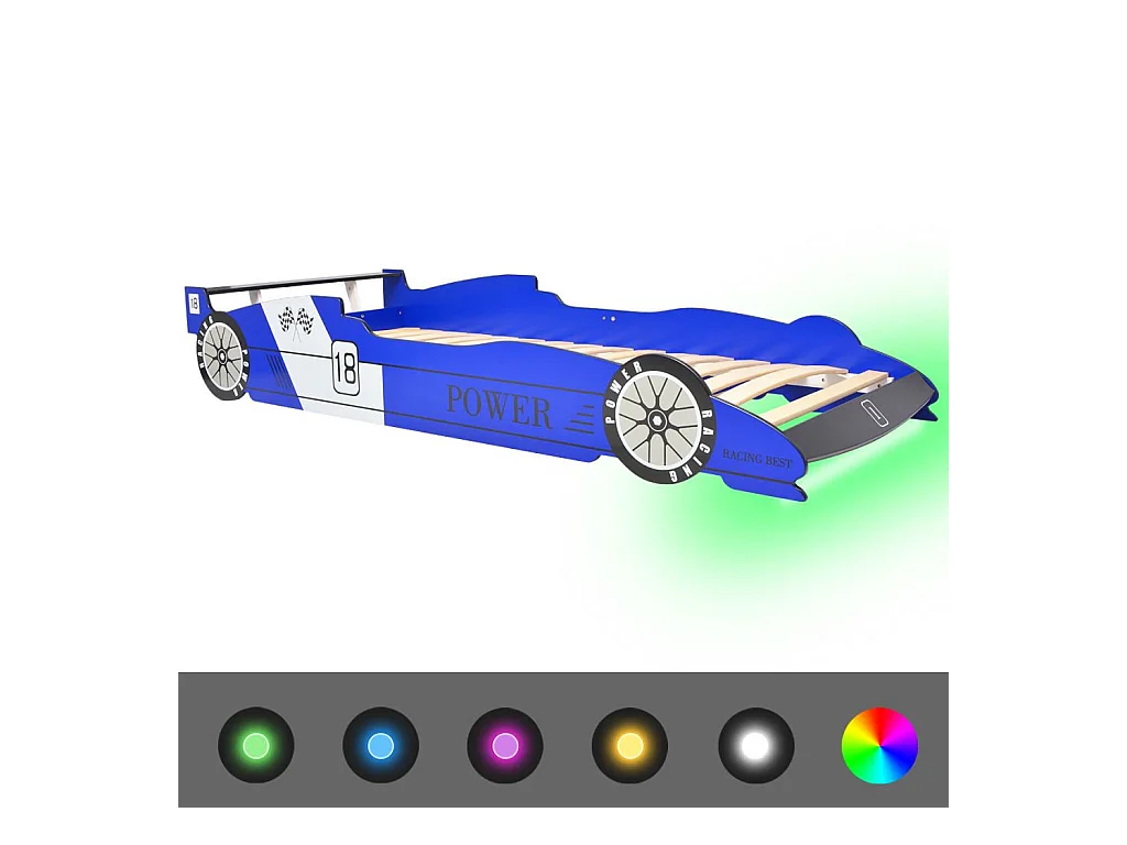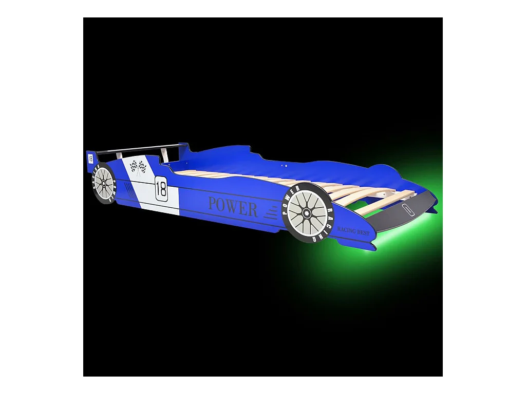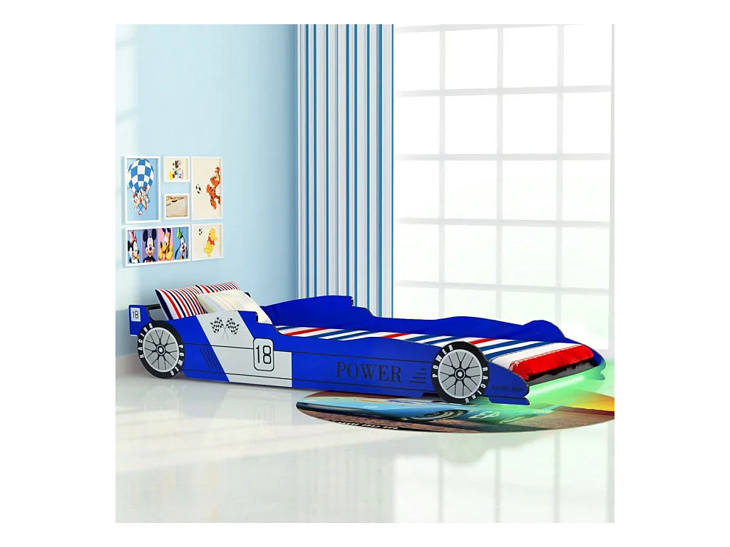Lit voiture de course pour enfants avec LED 90x200 Bleu