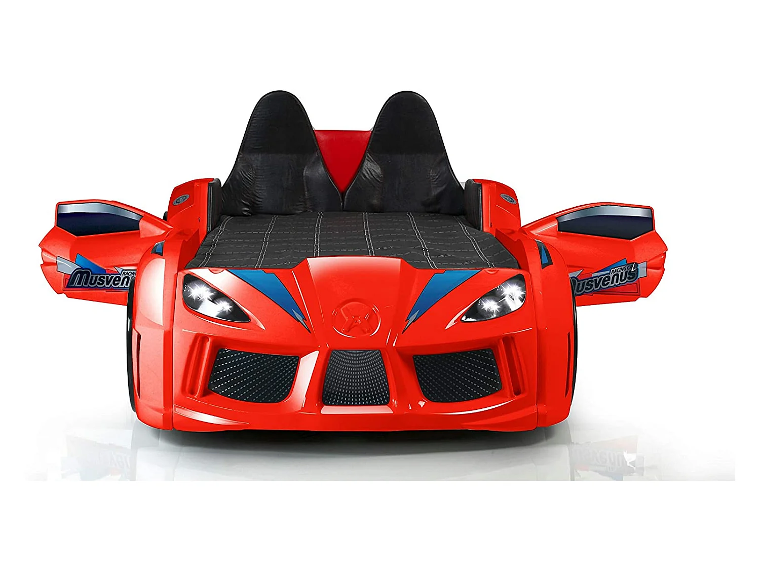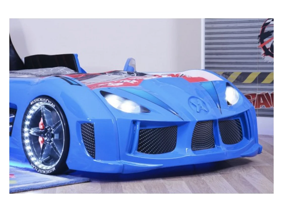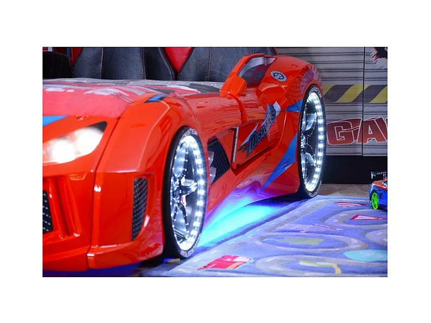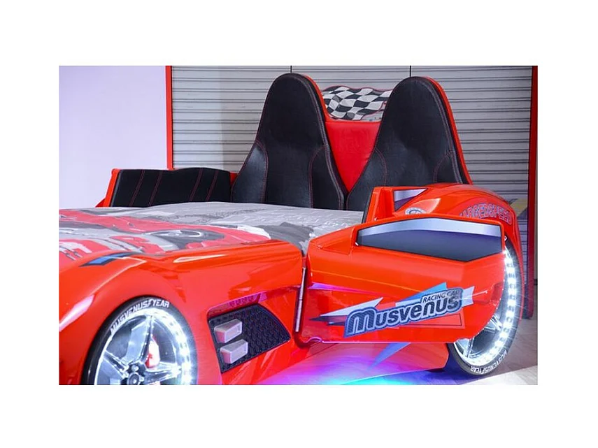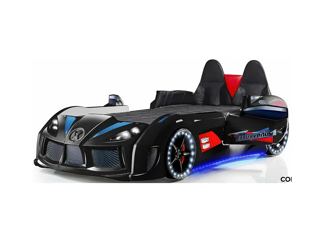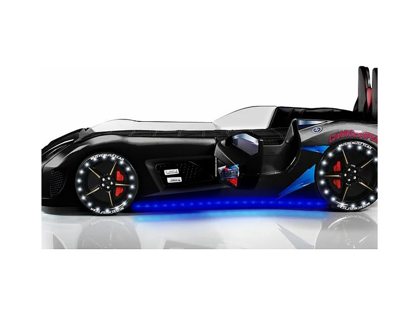 Lit voiture de sport noir à Led avec effets sonores Competition 90x190