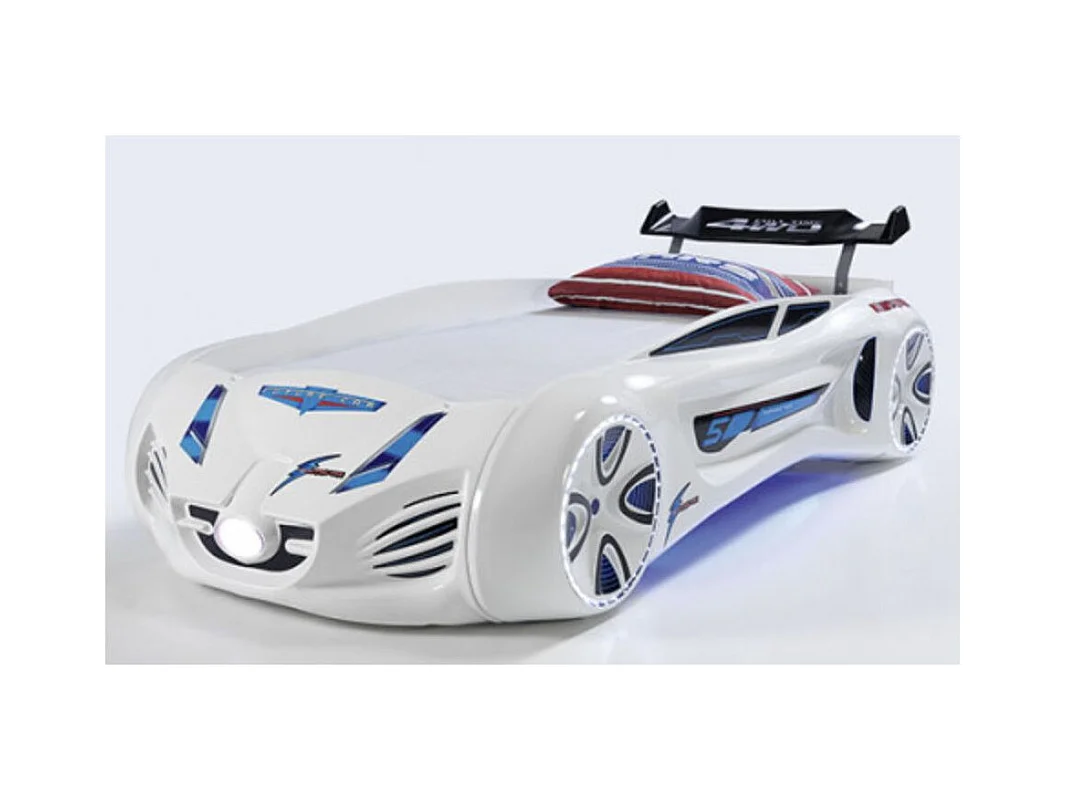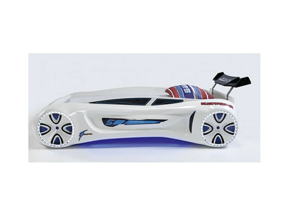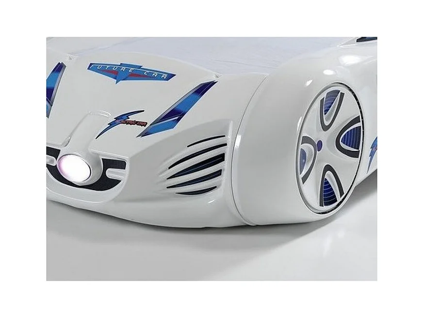 Lit voiture enfant futuriste blanche à Led avec effets sonores 90x190