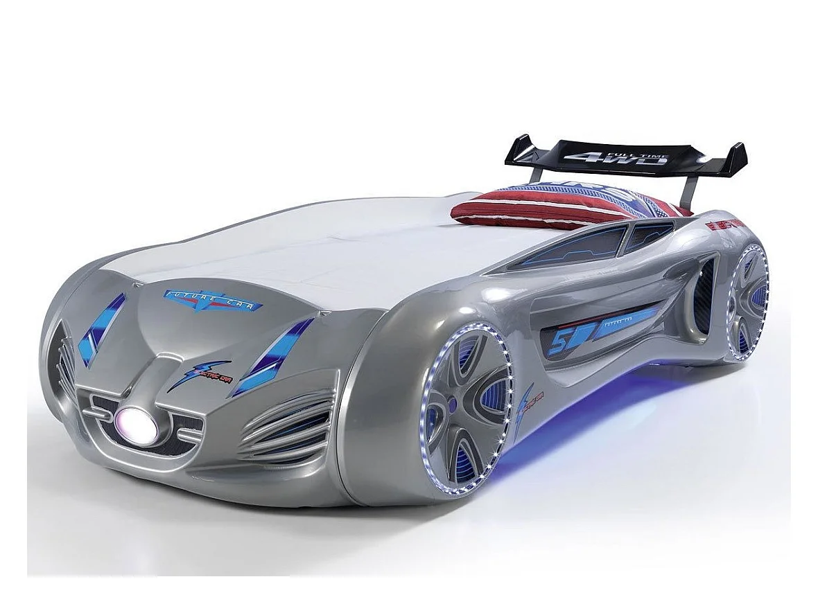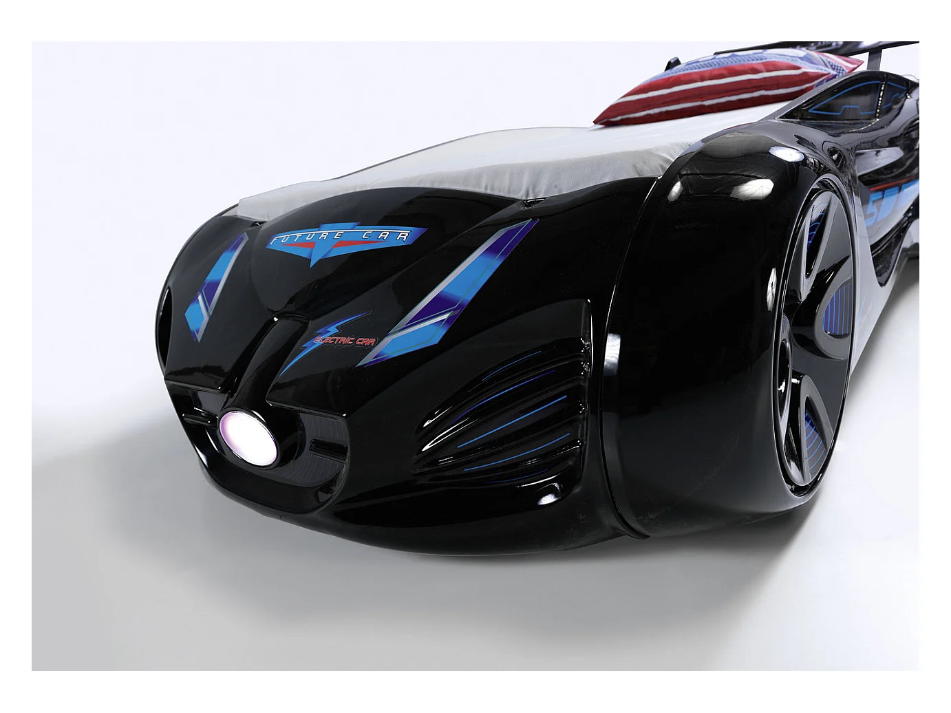 Lit voiture enfant futuriste noir à Led avec effets sonores 90x190