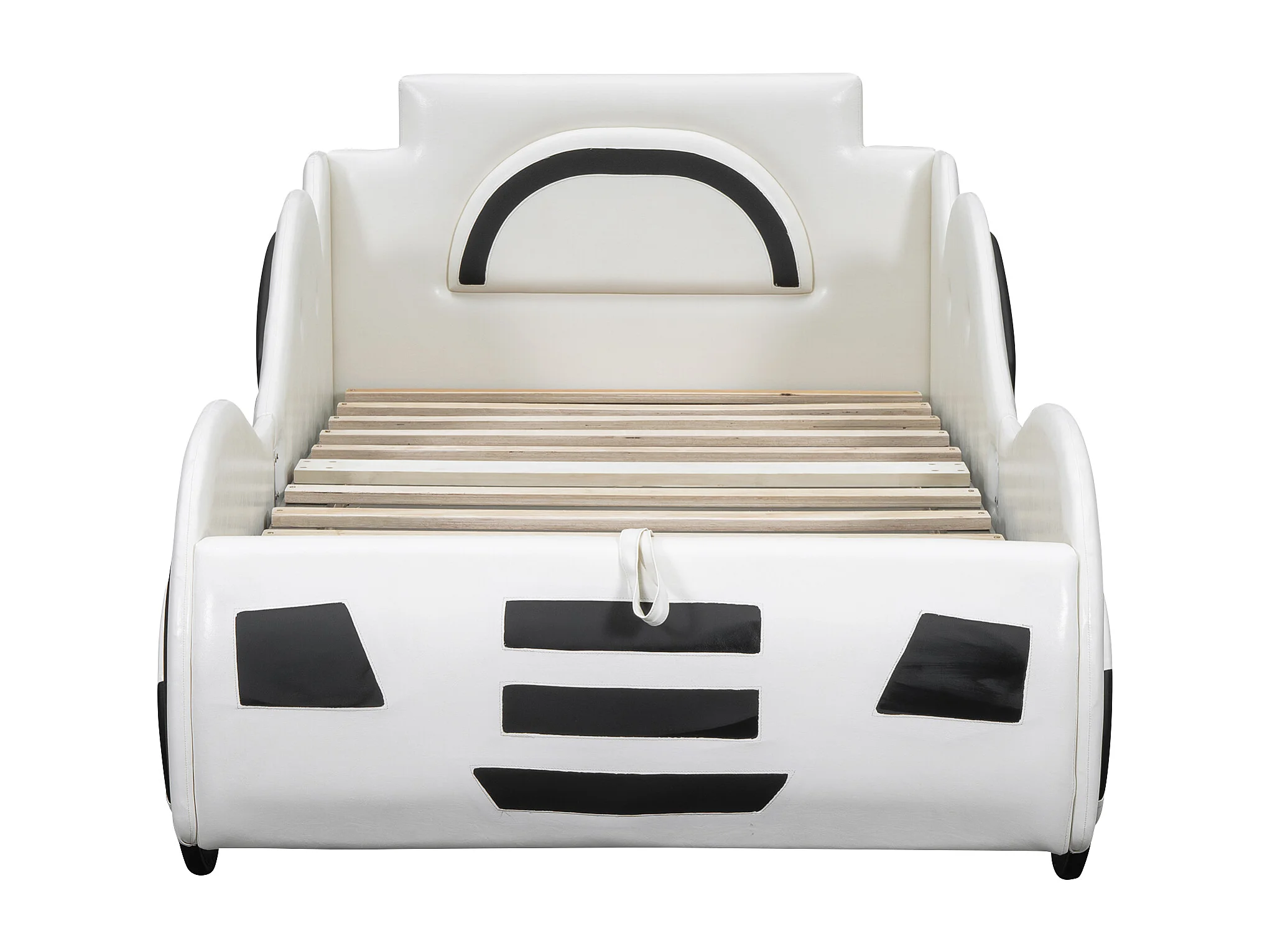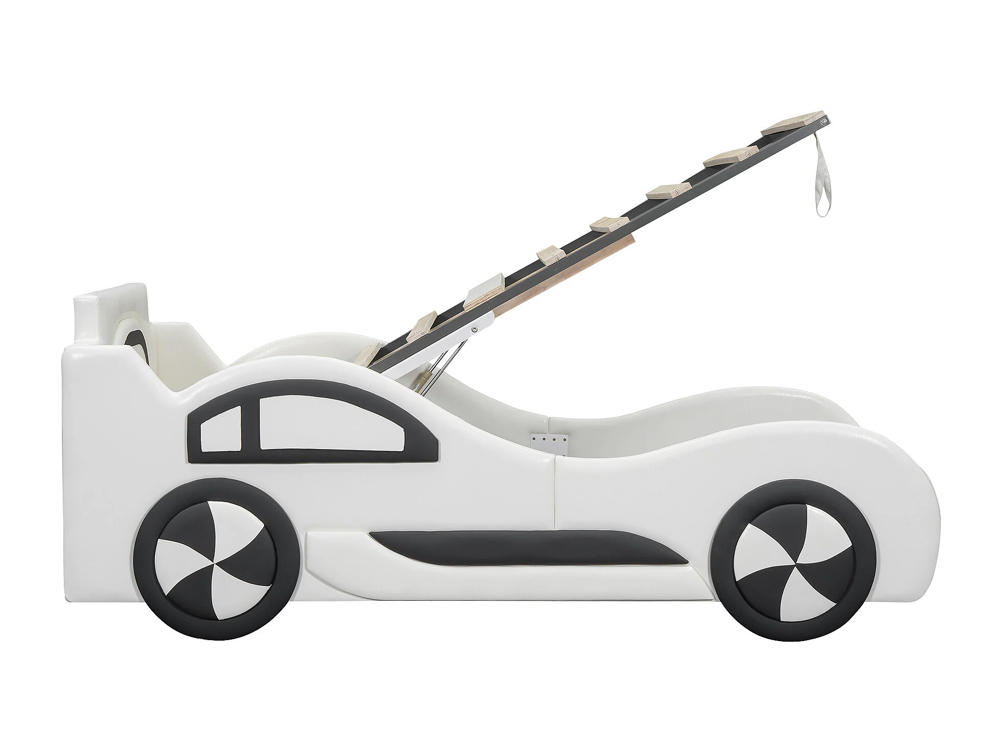 Lit voiture pour enfant - 90 x 200 cm - avec sommier à lattes + rangement sous le lit - PU - blanc