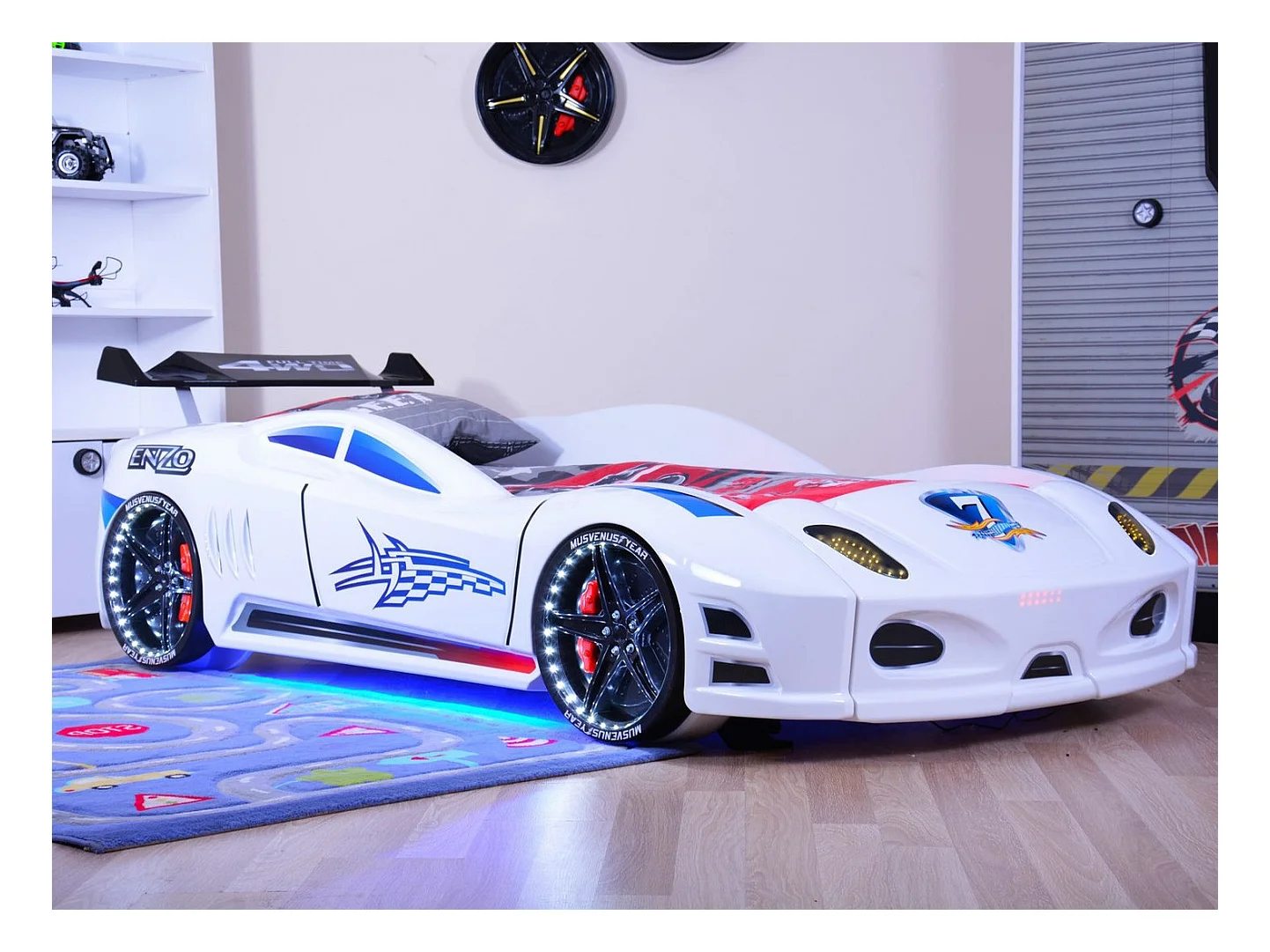 Lit voiture turbo V7 rose à Led
