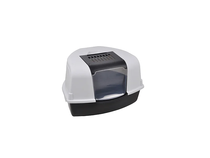 Maison de toilette chat porte battante et haute pelle PP gris blanc