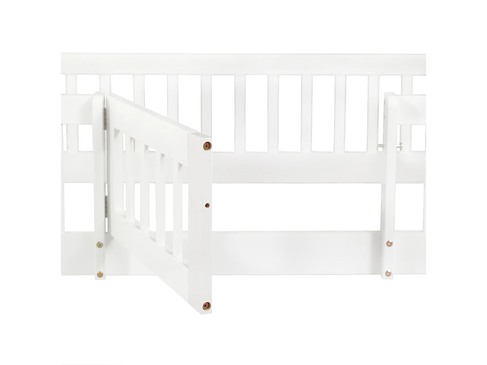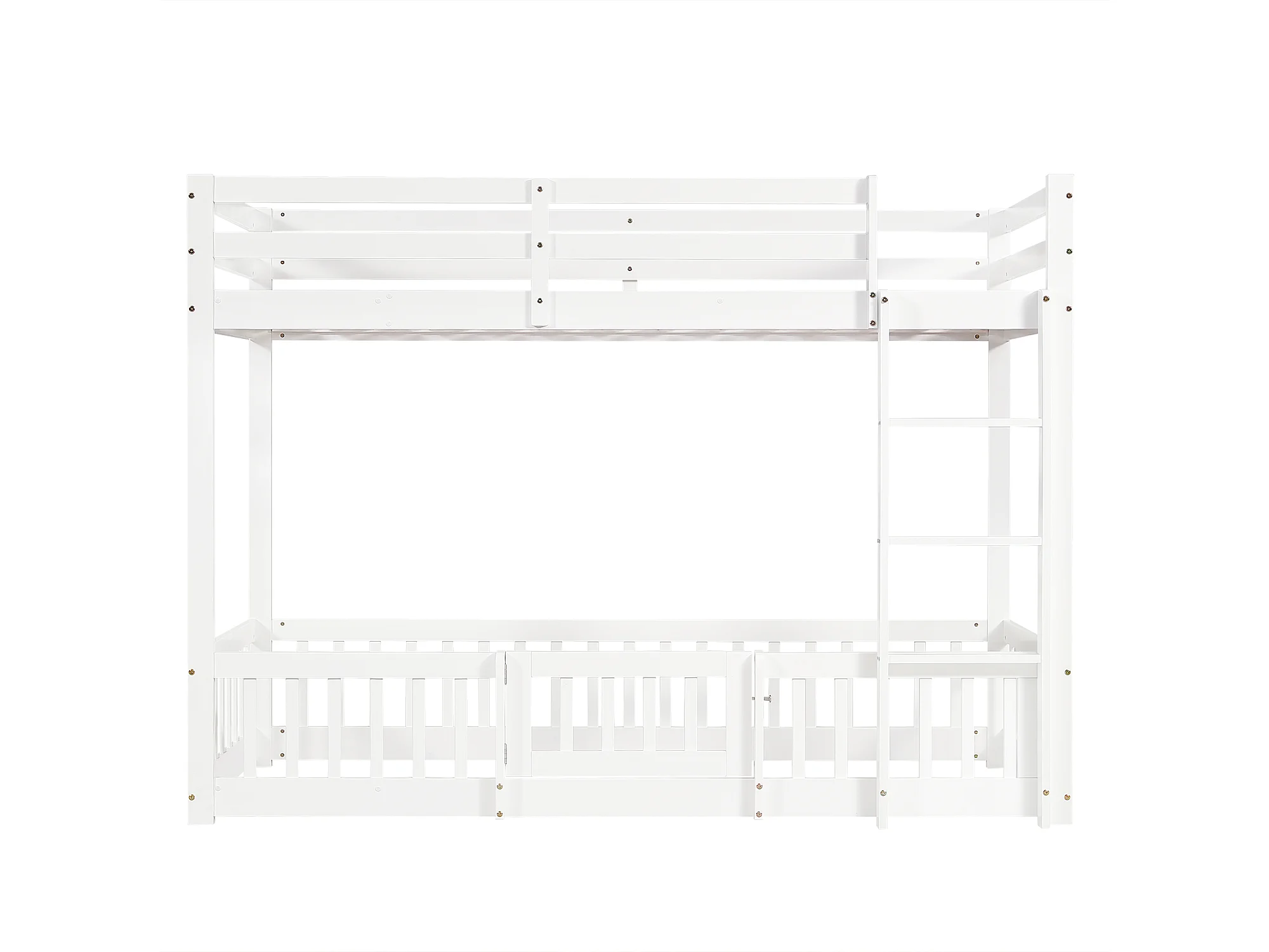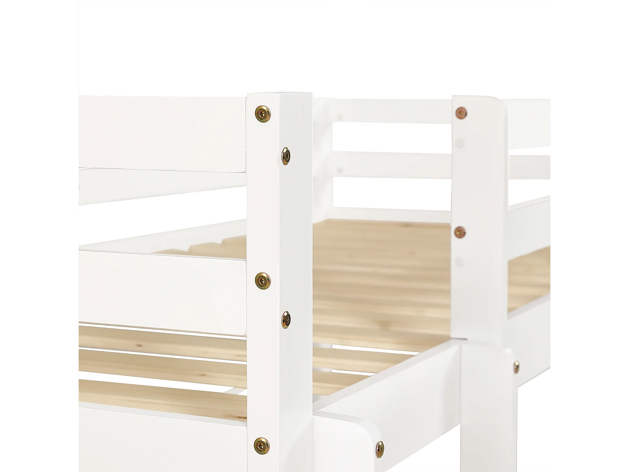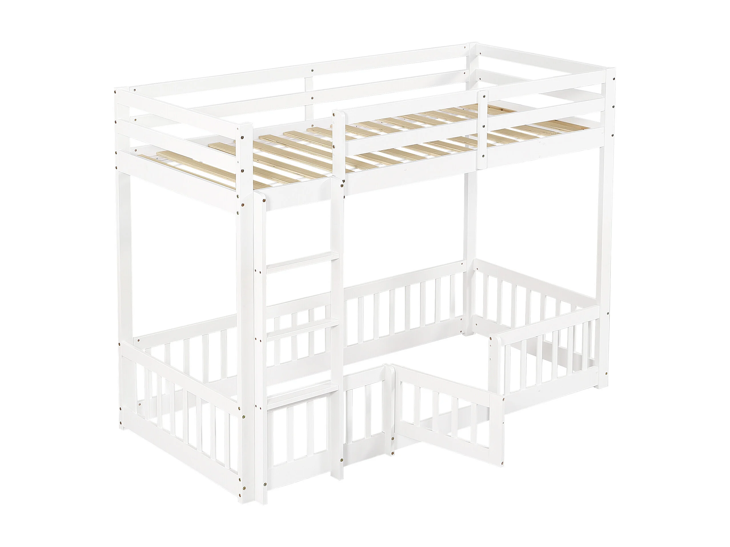 Lit superposé 90 x 200 cm, avec échelle, barrières de sécurité et porte, avec espace libre sous le lit, blanc