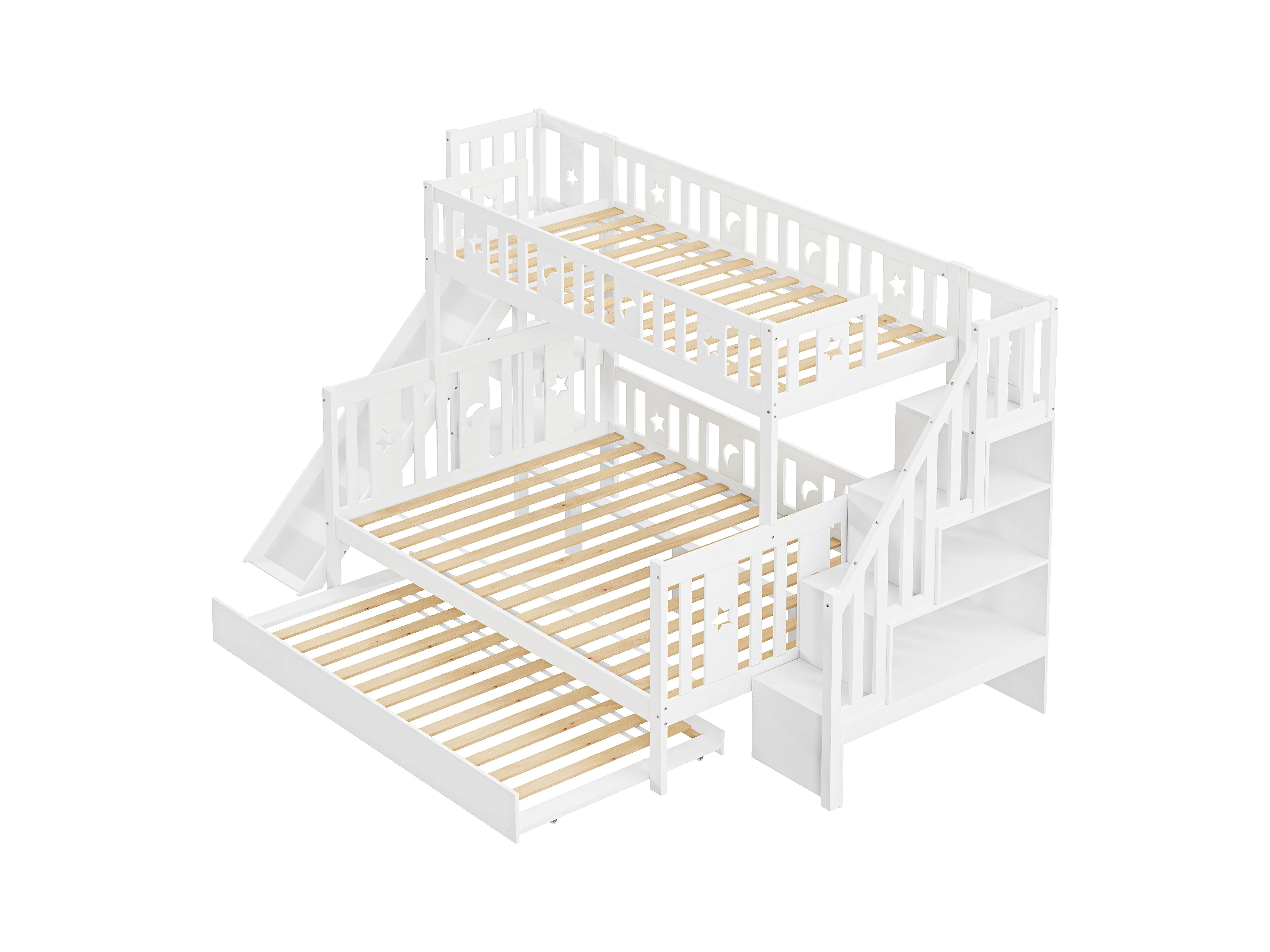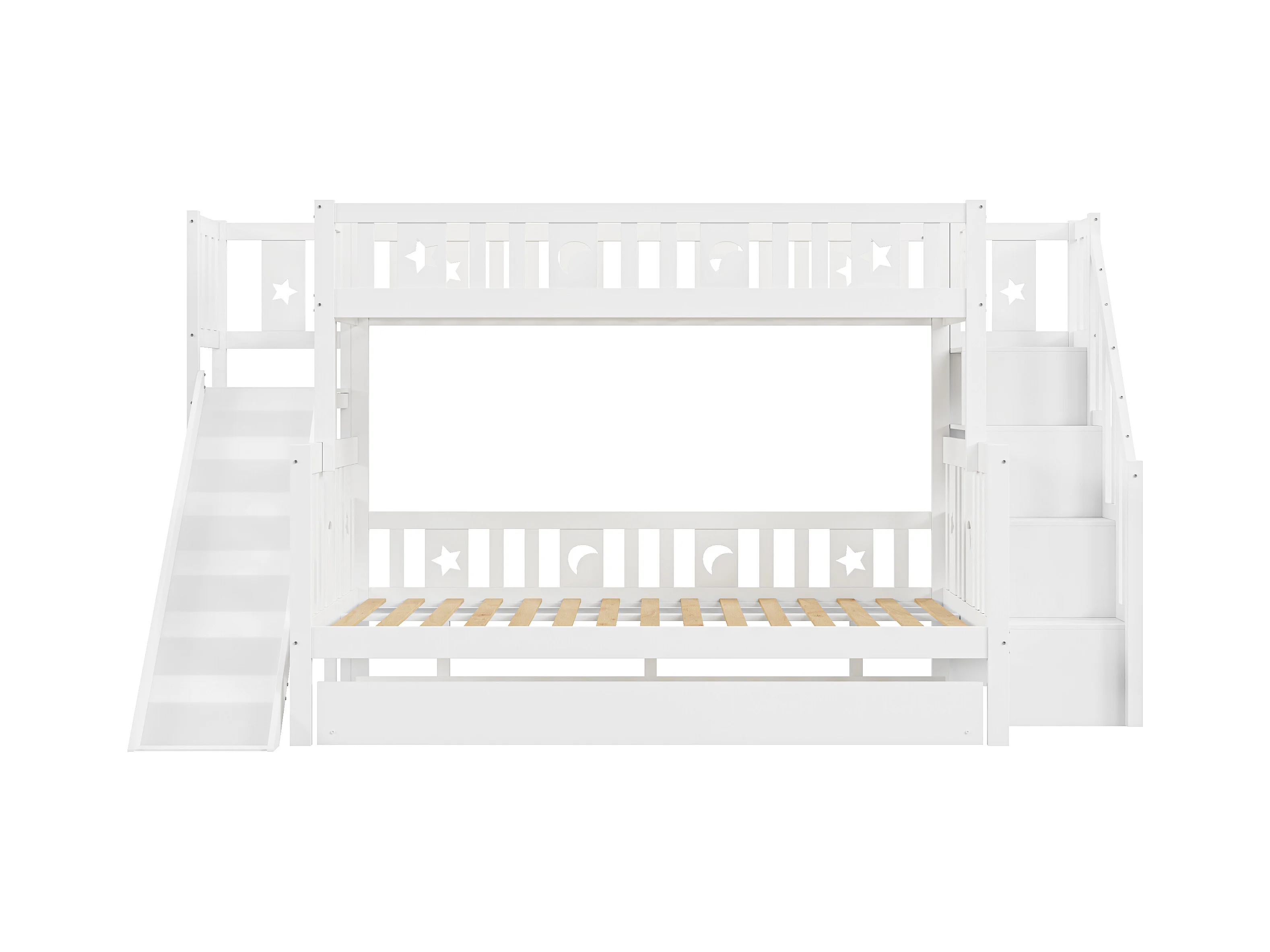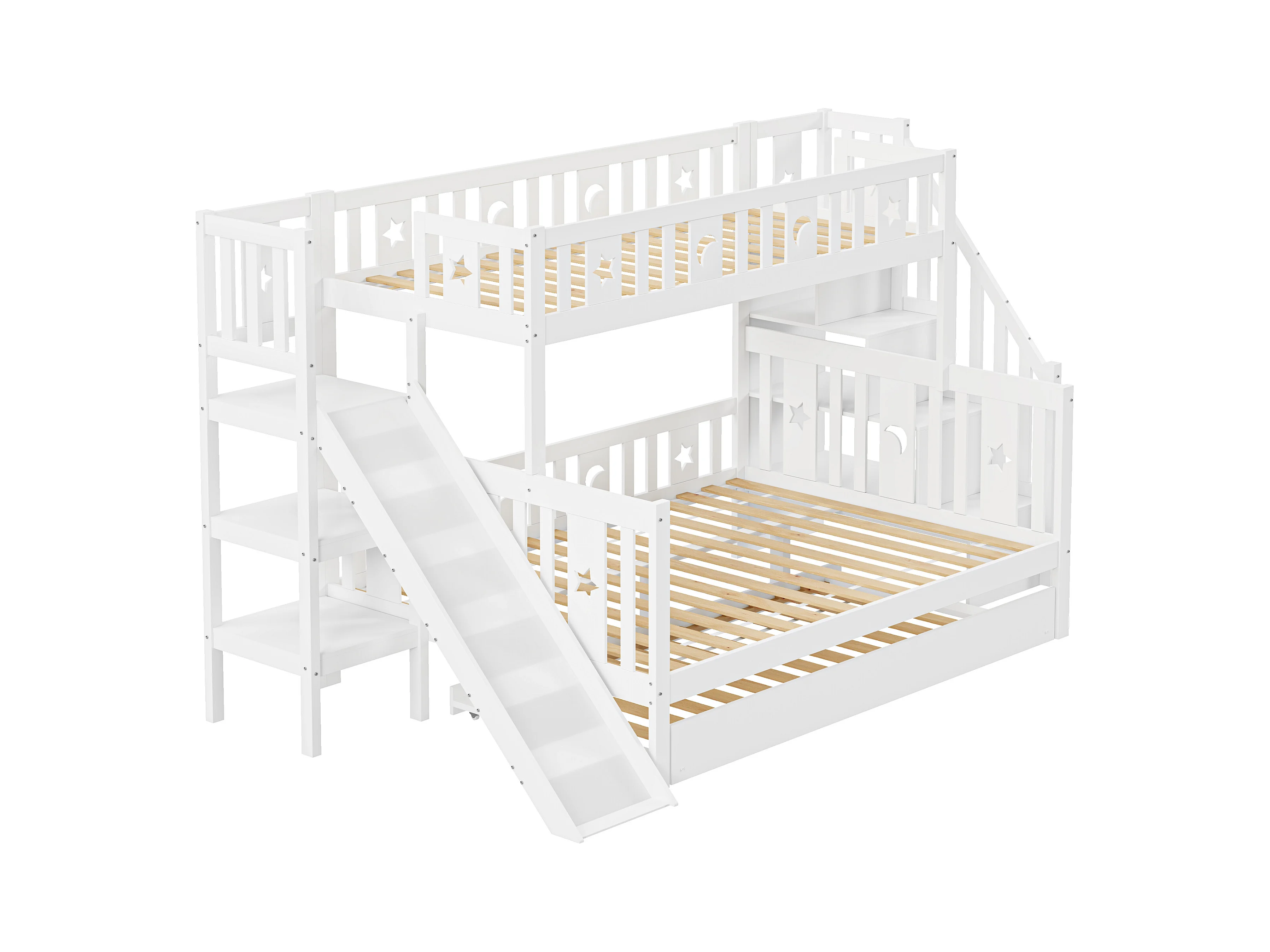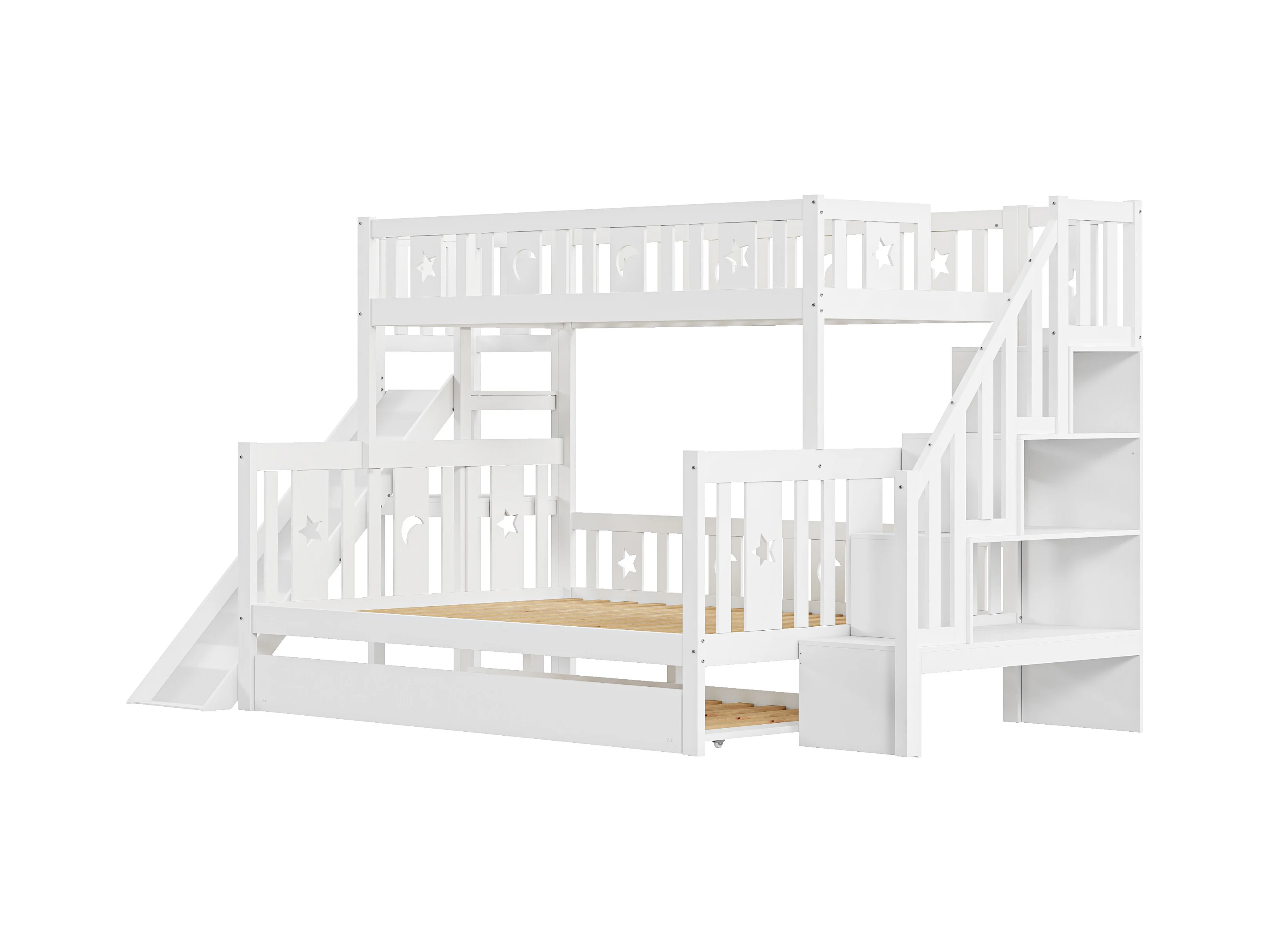 Lits superposés avec toboggan et étagères, lit gigogne - 2 x 90 x 200 cm + 140 x 200 cm - Blanc - ANTHONY