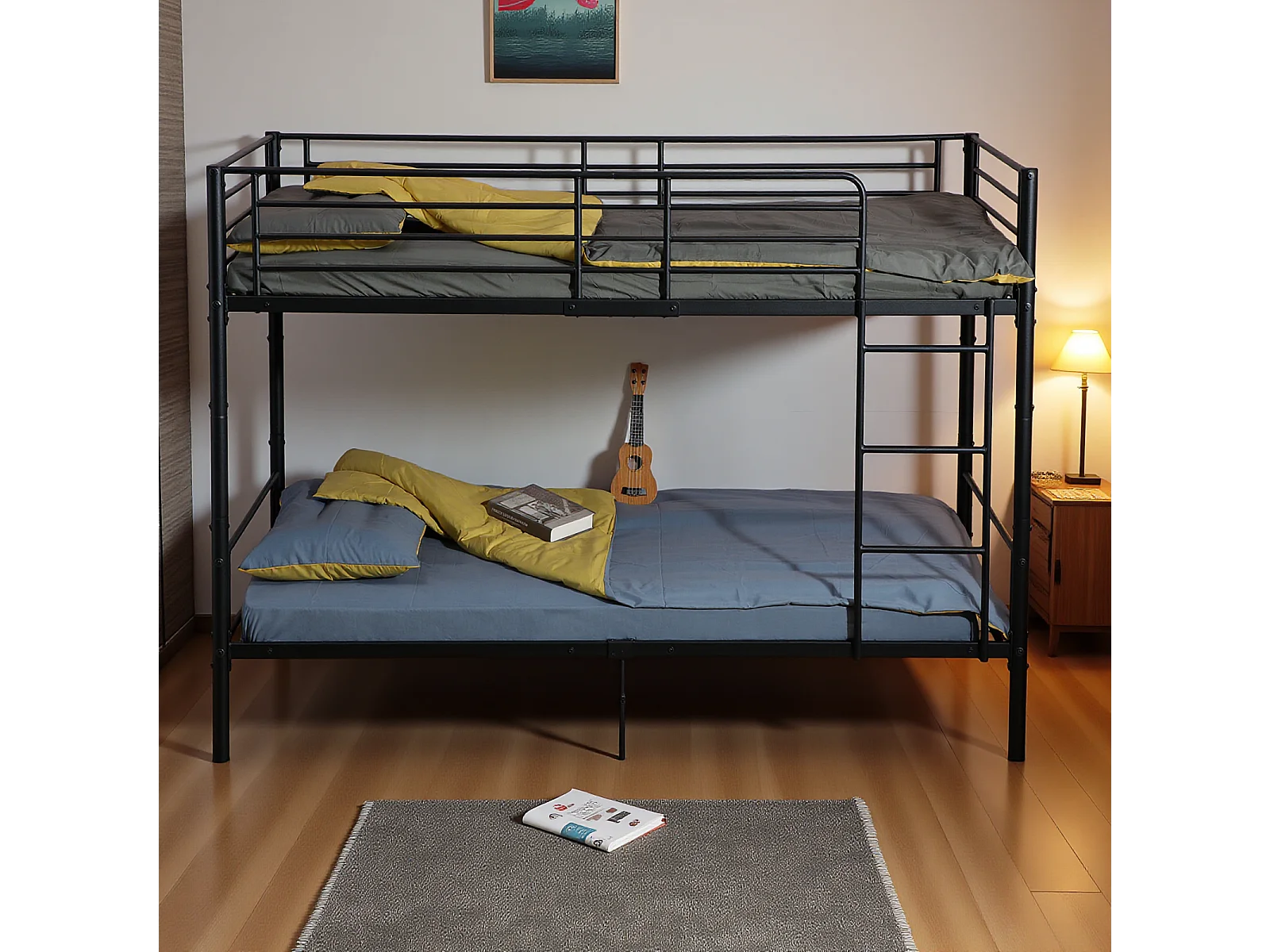 Lits Superposés de Style Industriel avec Échelle - Noir, Lit Double Superposé pour Adultes, Design Moderne