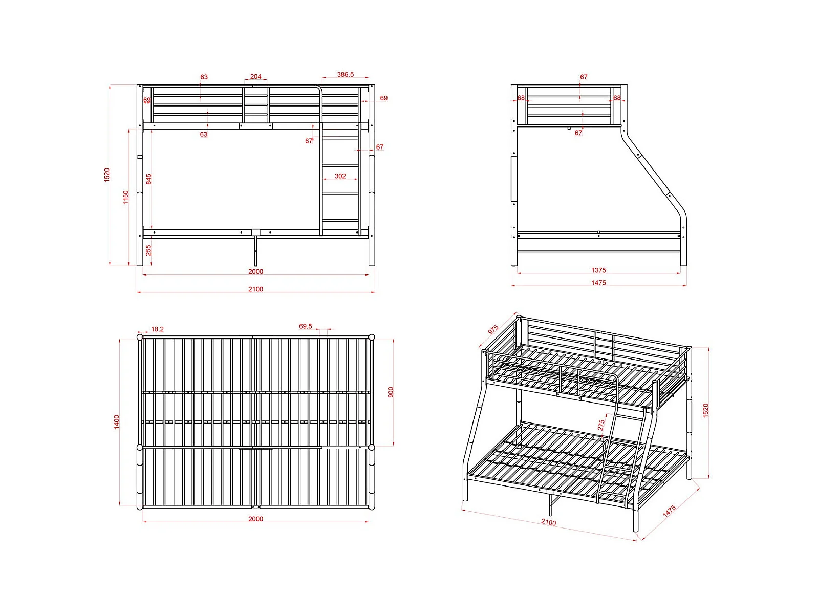 Lits Superposés en Métal avec Échelle - Noir, Lit Double Superposé pour Adultes, Cadre Métallique Robuste et Design Moderne
