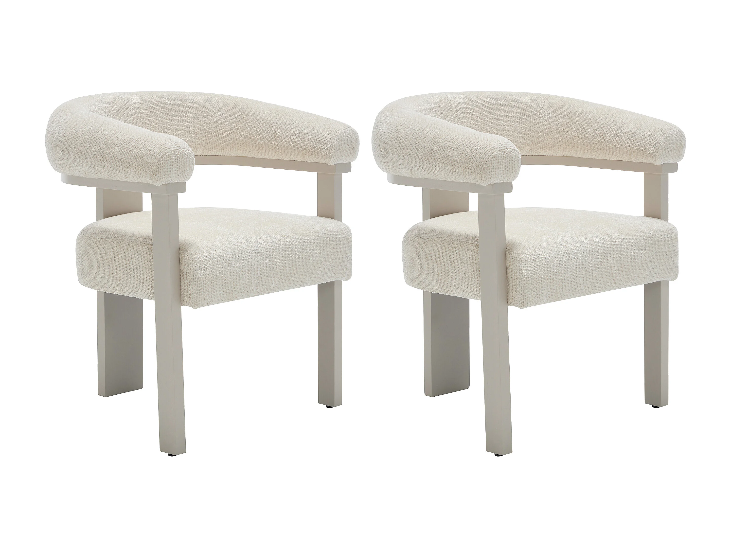 Lot de 2 chaises avec accoudoirs en tissu texturé et bois d'hévéa beige - Crème - LIVELIA de Pascal Morabito