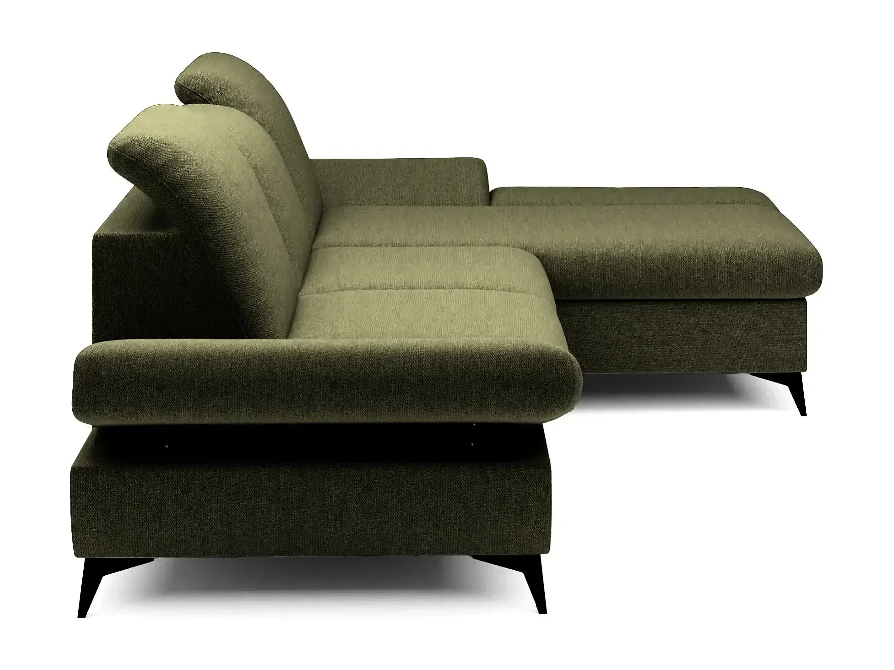 LIVIA - Canapé d'angle convertible tissu chiné 4 places - Vert - Droit