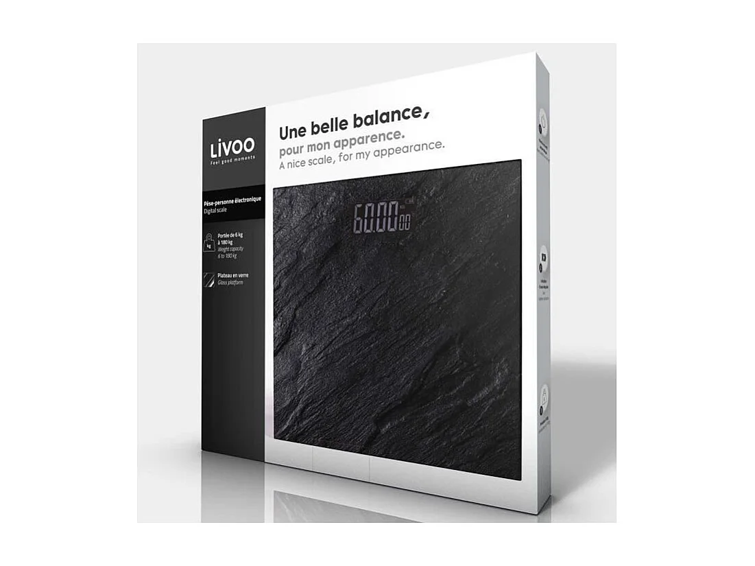 LIVOO DOM382PI - Pese-personne electronique - Impression pierre - Plateau en verre - Pesee jusqua 180 kg - Precision 100g