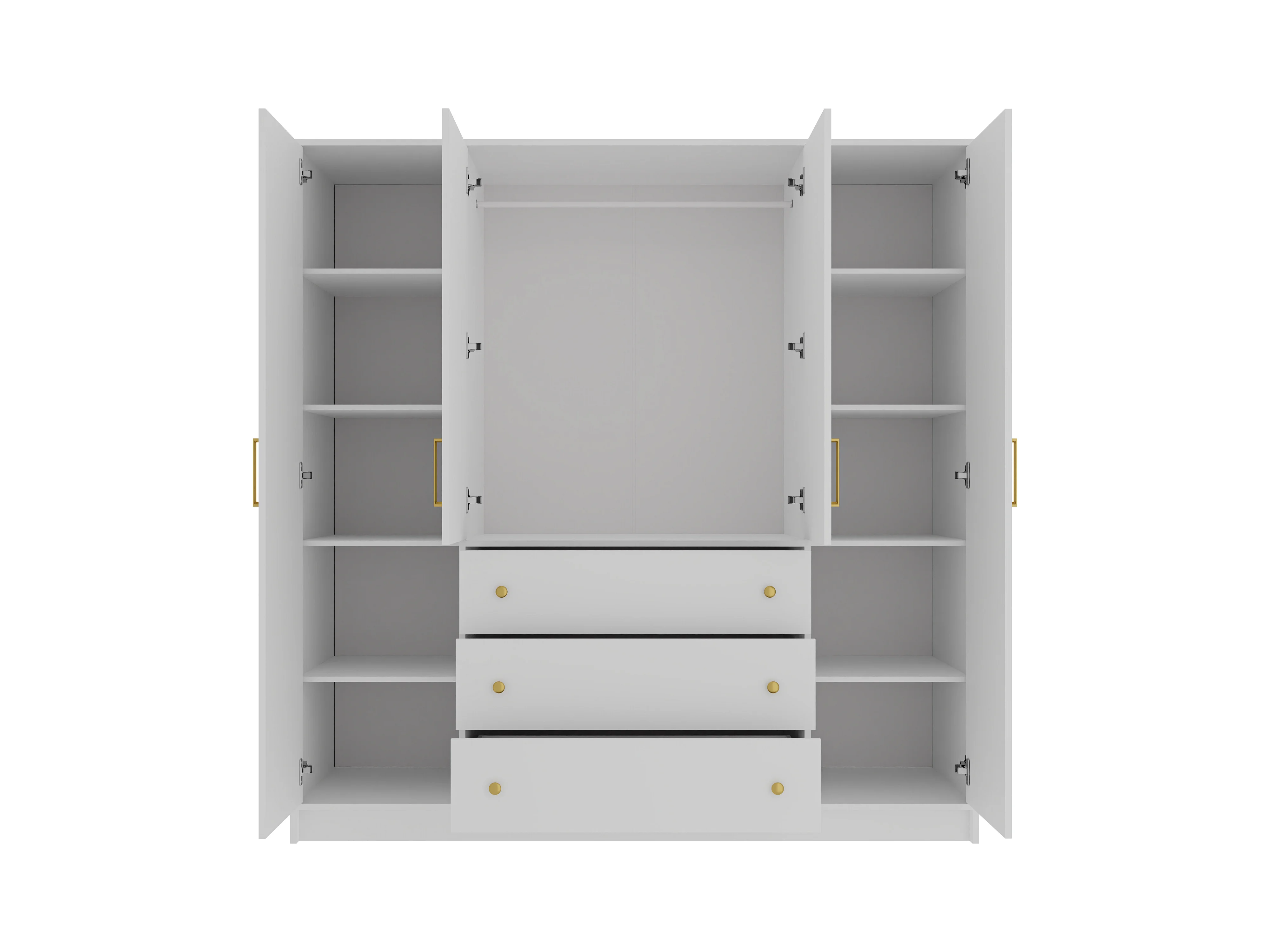 Armoire d'angle 6 portes et 3 tiroirs - Avec miroirs - L311 cm - Blanc - LIZANDRO