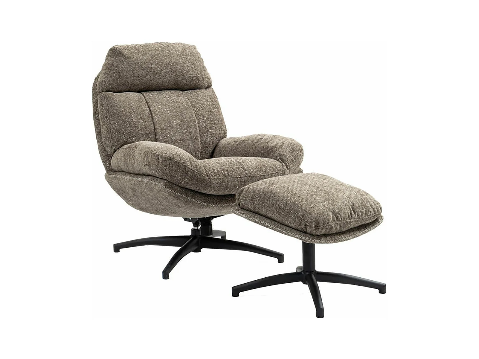 LOAM - Fauteuil Pivotant Inclinaison Réglable avec Repose Pieds Tissu Brun