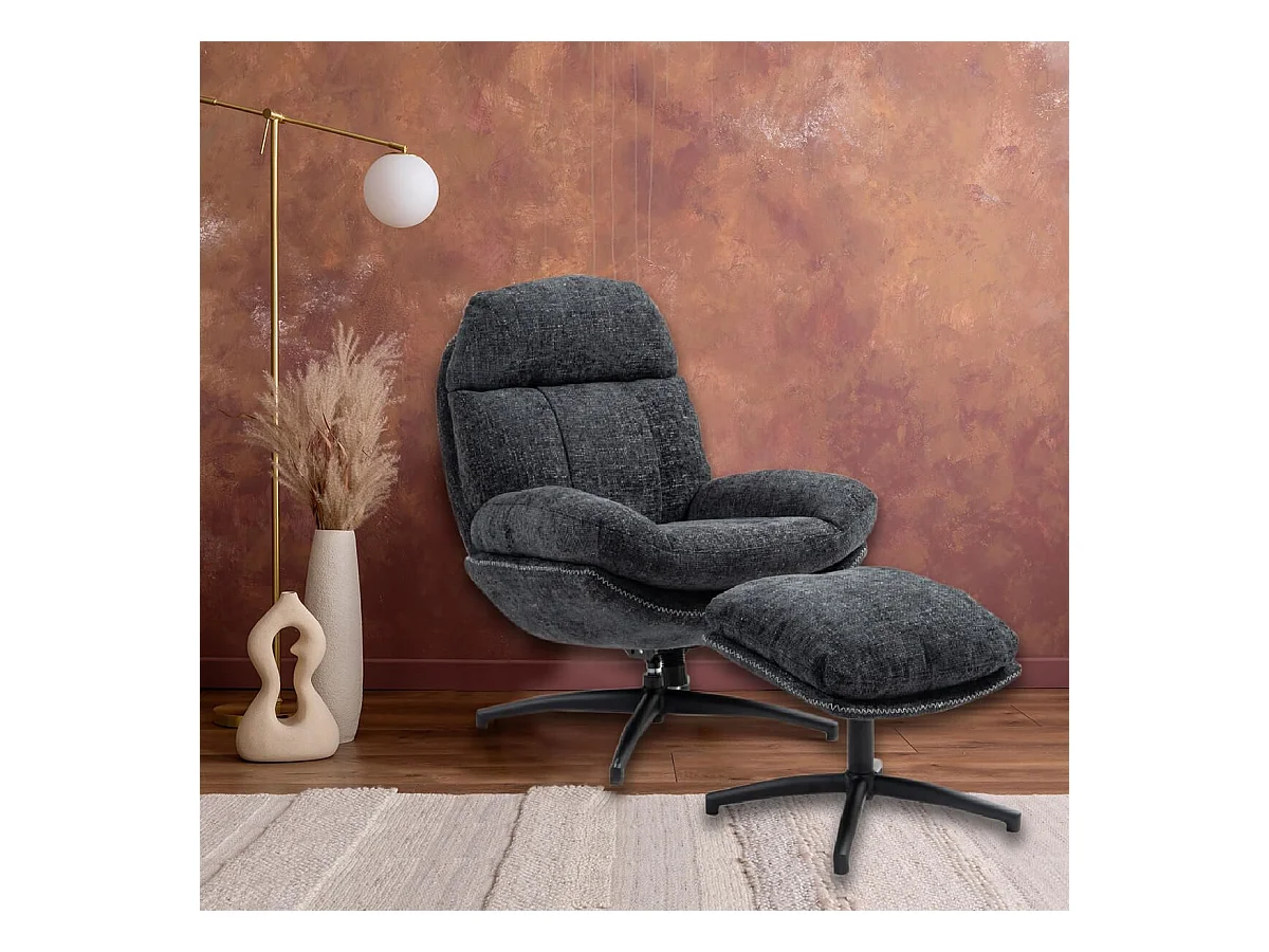 LOAM - Fauteuil Pivotant Inclinaison Réglable avec Repose Pieds Tissu Gris