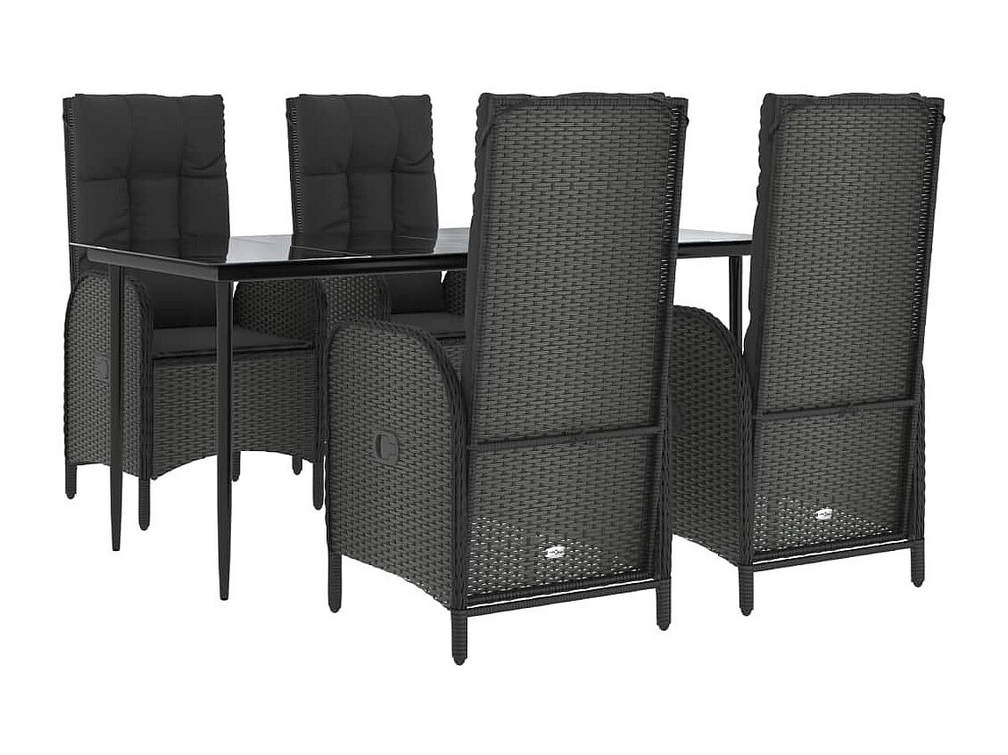Lochem Ensemble à manger de jardin coussins 5pcs Noir Résine tressée