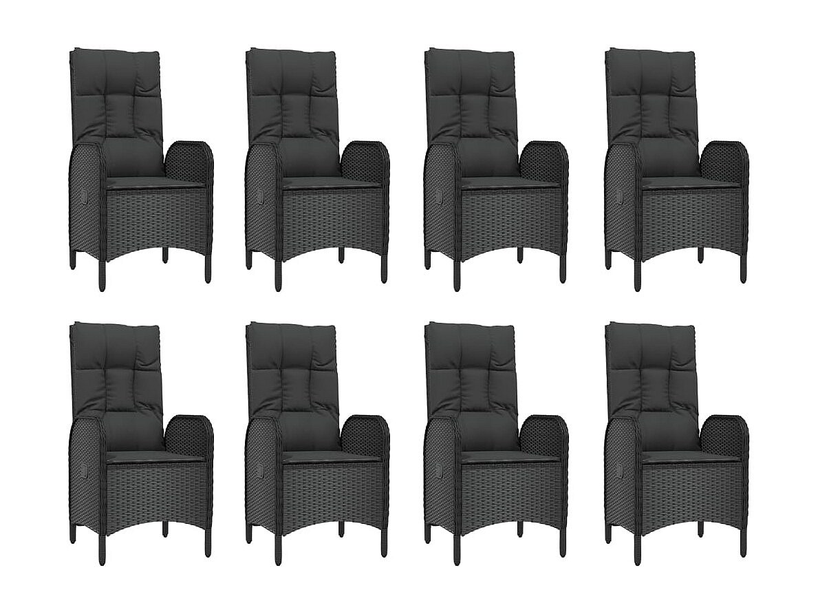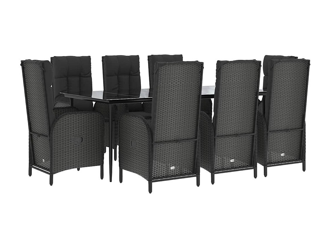 Lochem Ensemble à manger jardin 9pcs et coussins noir résine tressée