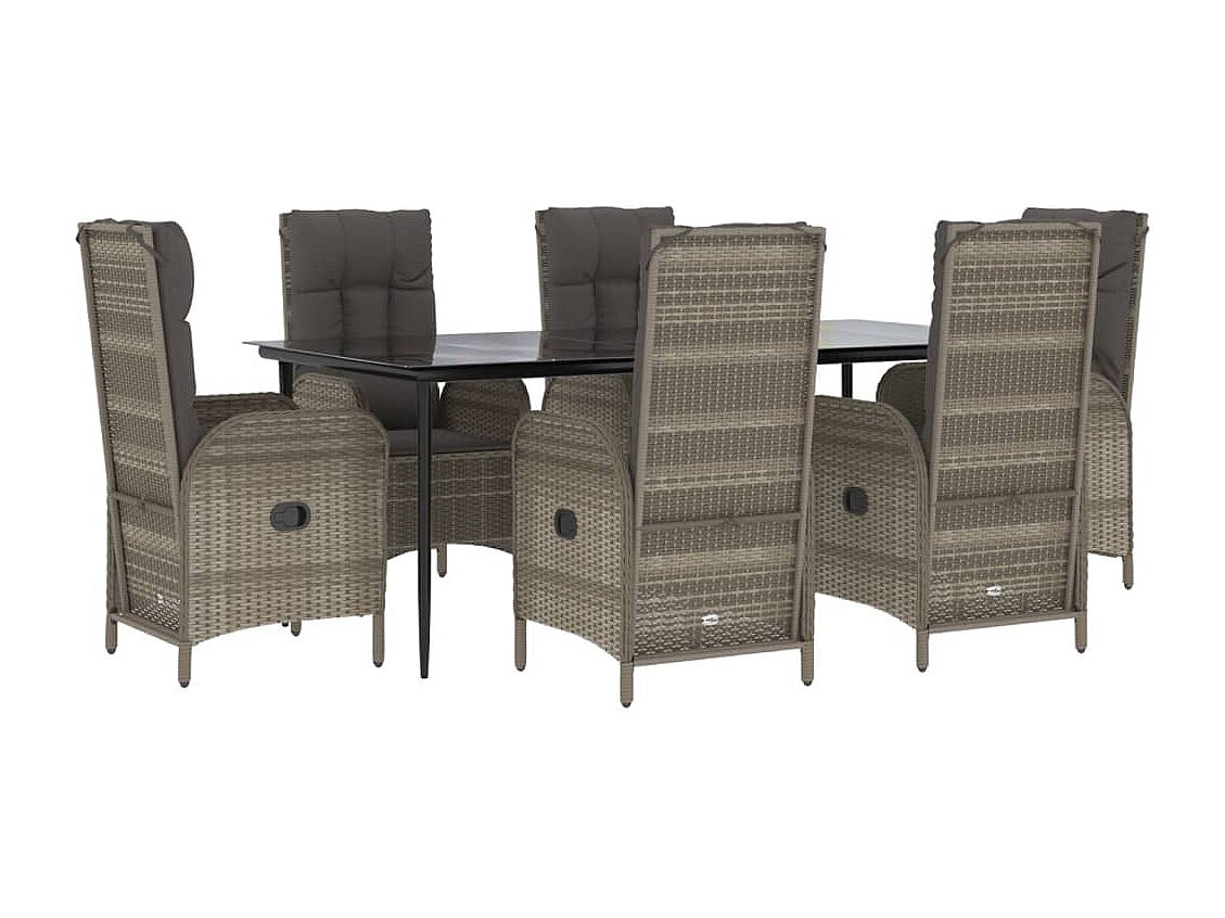 Lochem Ensemble à manger jardin et coussins 7 pcs Noir et gris Rotin