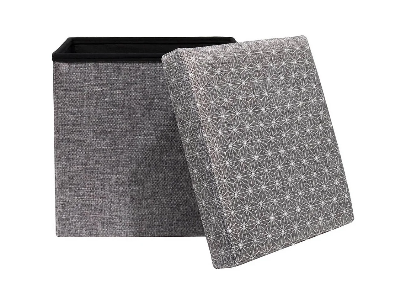 LOFF - Pouf-Coffre Pliable Gris Foncé Motif Géométrique