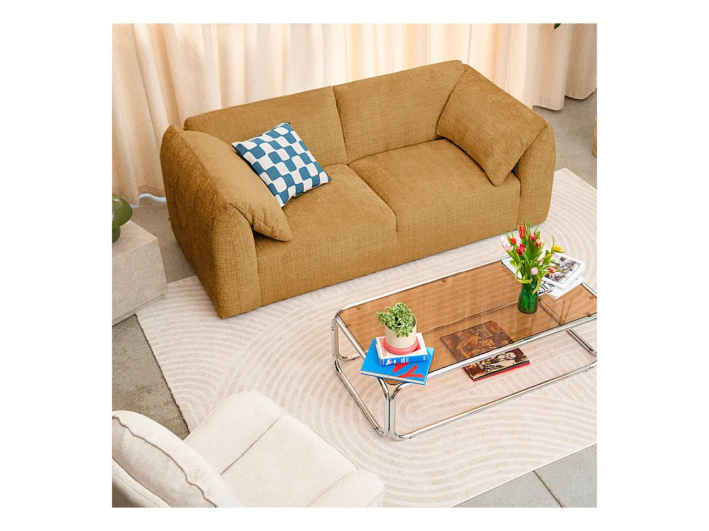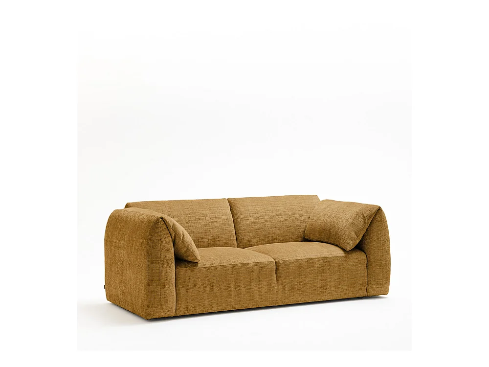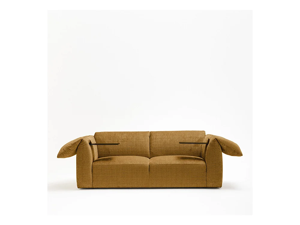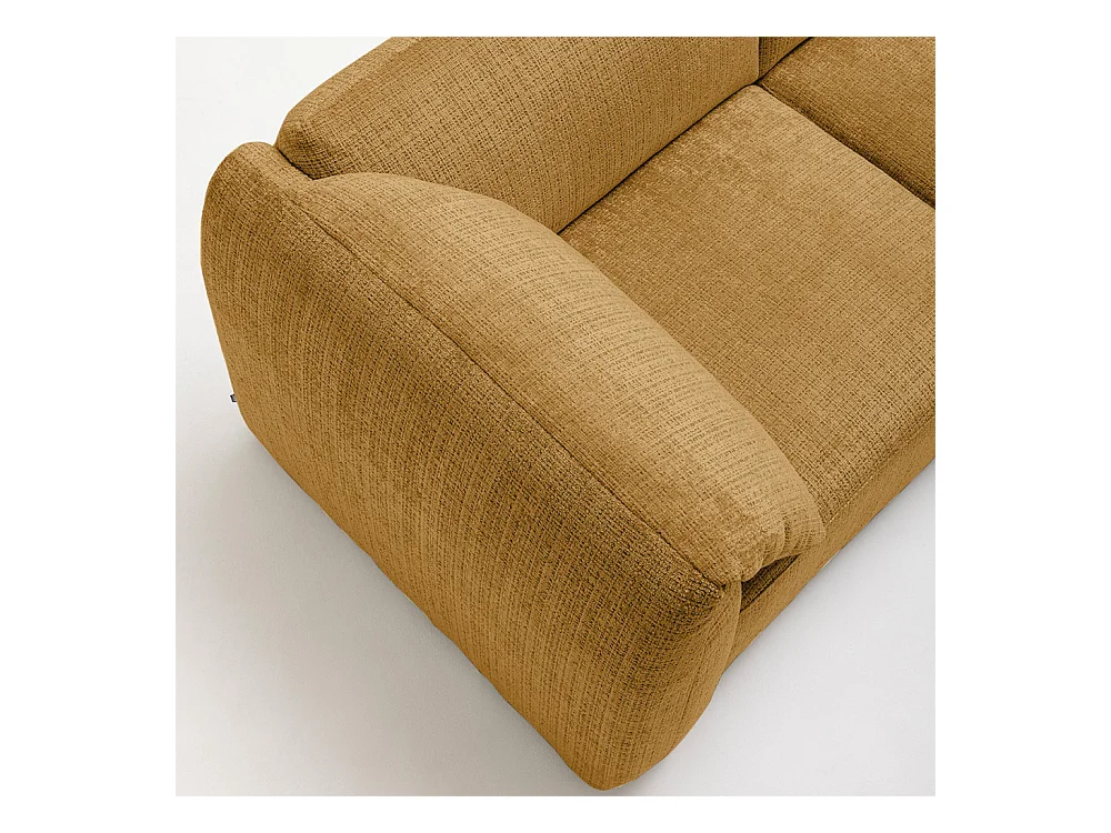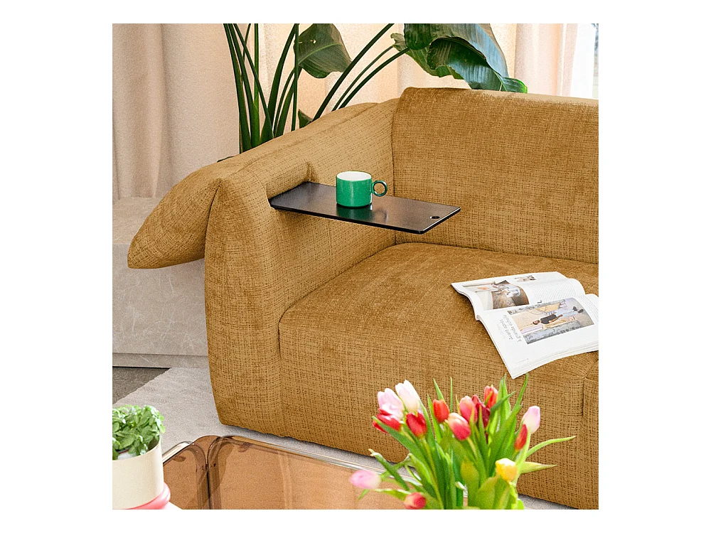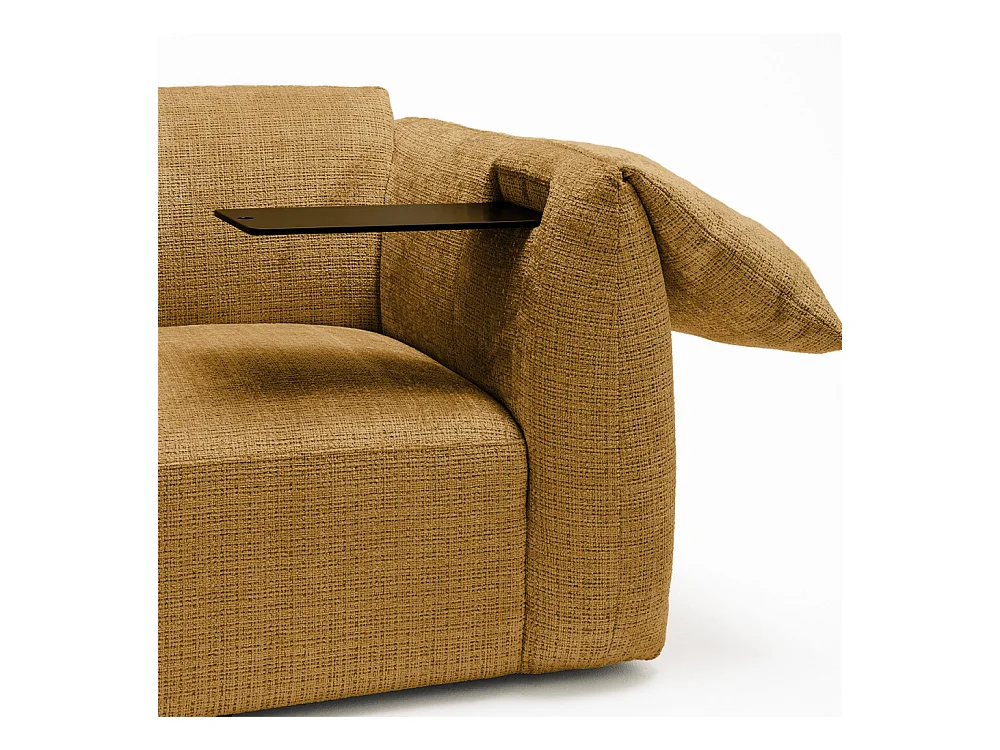 Logan - Canapé 3 places accoudoirs relevables avec tablette en tissu chenille - Bronze