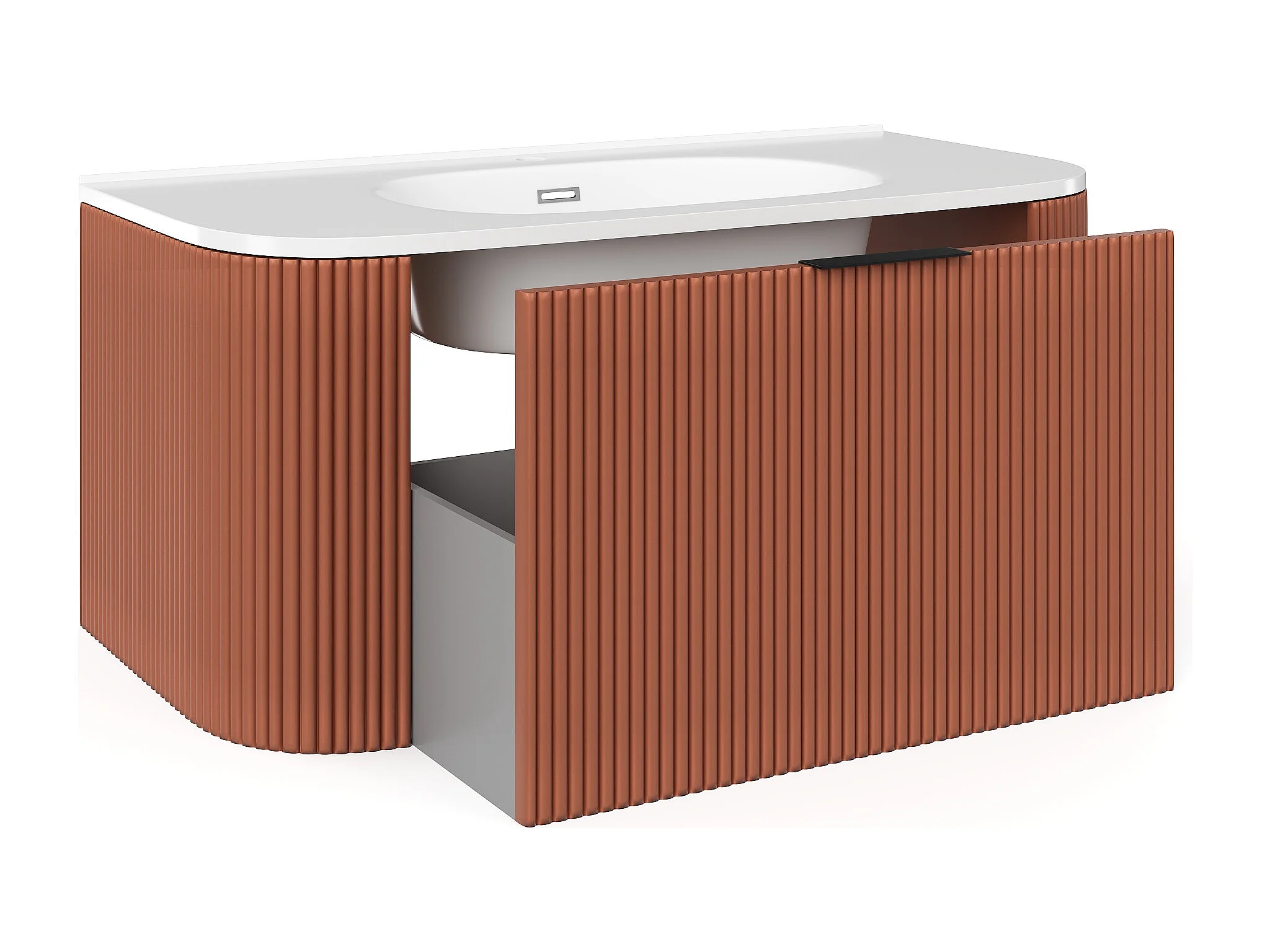 Meuble de salle de bain suspendu strié avec vasque à encastrer - Terracotta mat - 100 cm - LOMERI