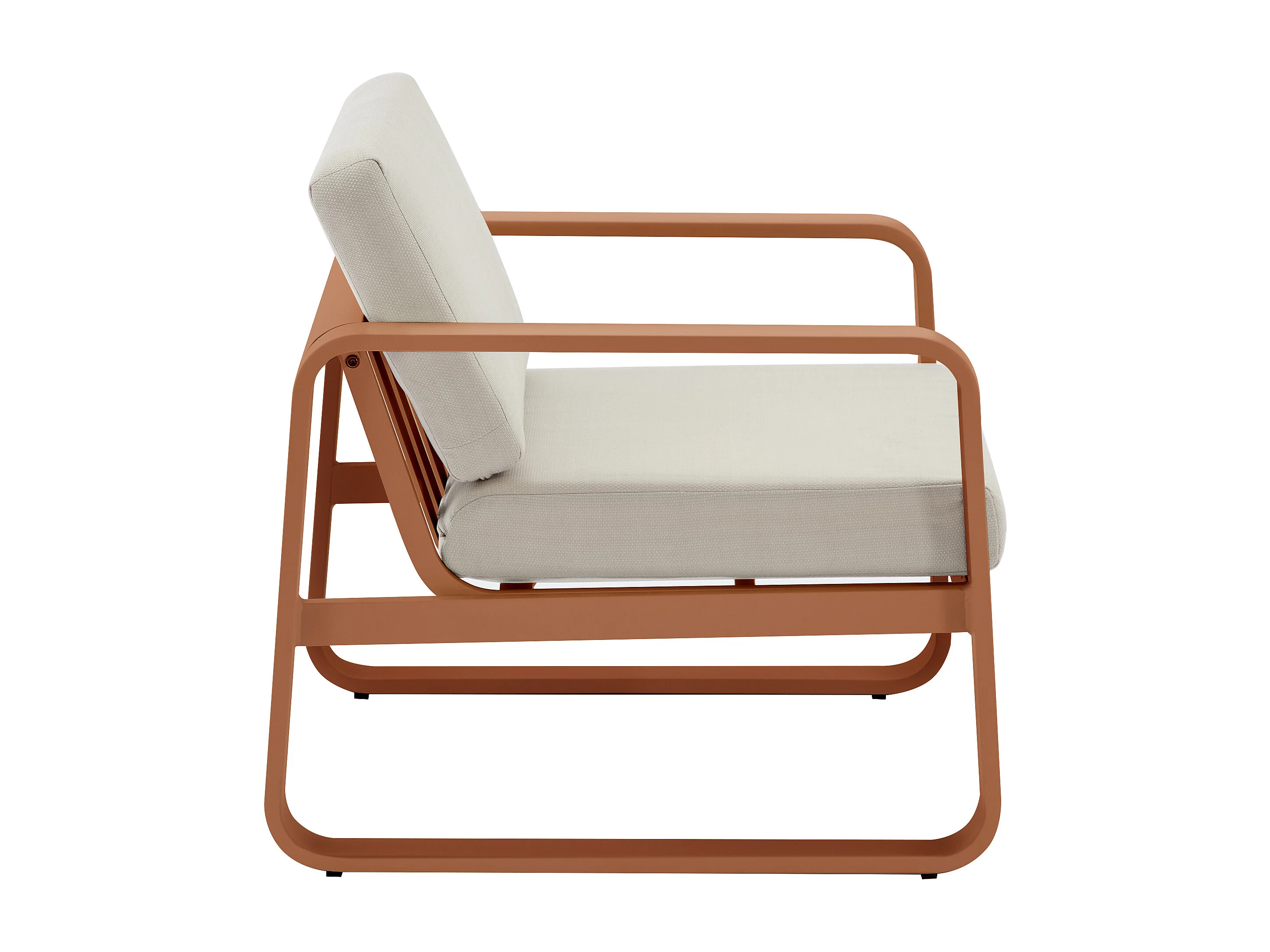 Salon de jardin en aluminium : 1 canapé 3 places, 2 fauteuils et 1 table basse - Cuivré avec coussins beiges - LOMIA de MYLIA