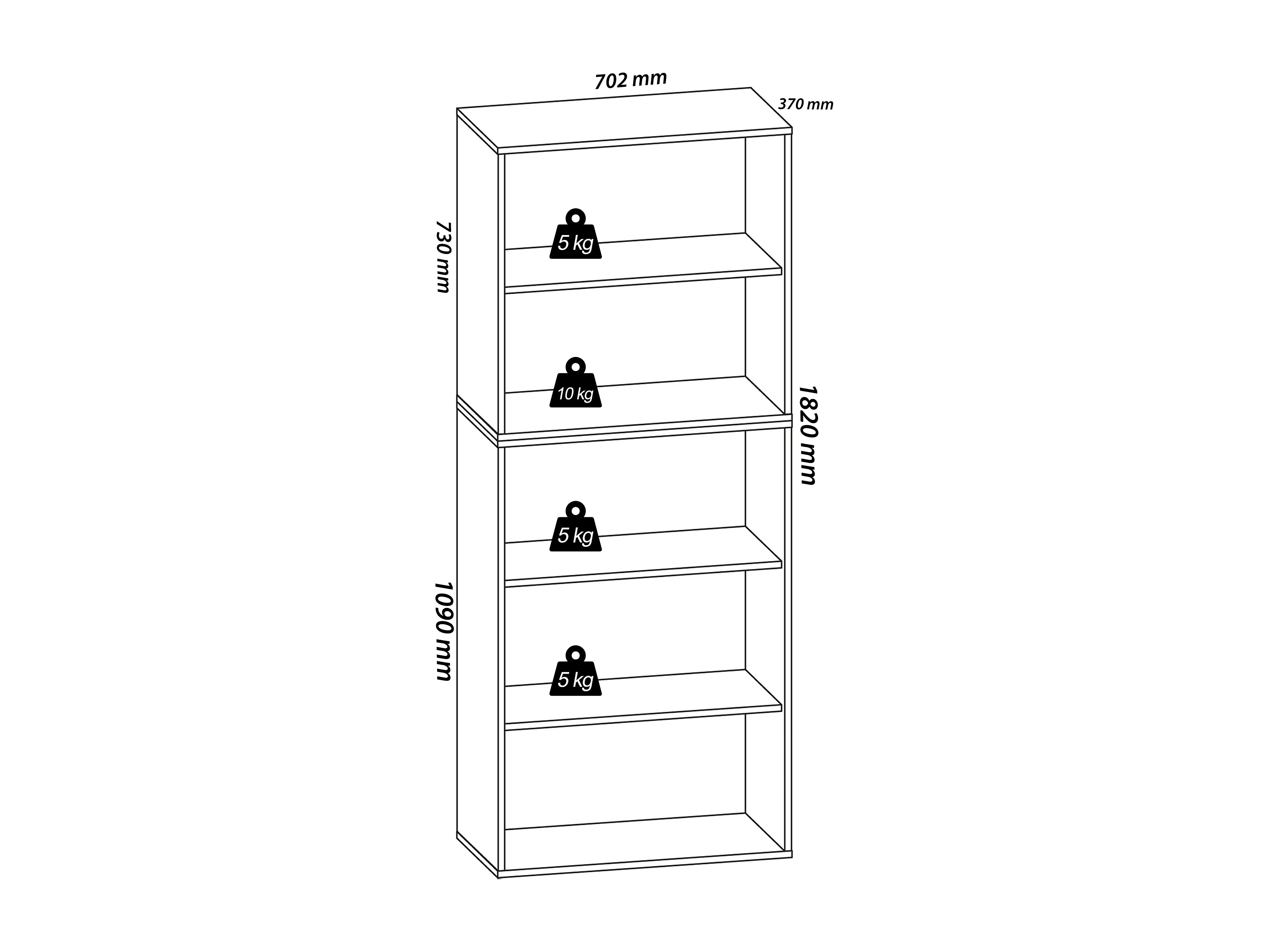 Office Shelf & Bookcase Lona Gray W. 70 x H. 184 x D. 37 cm
