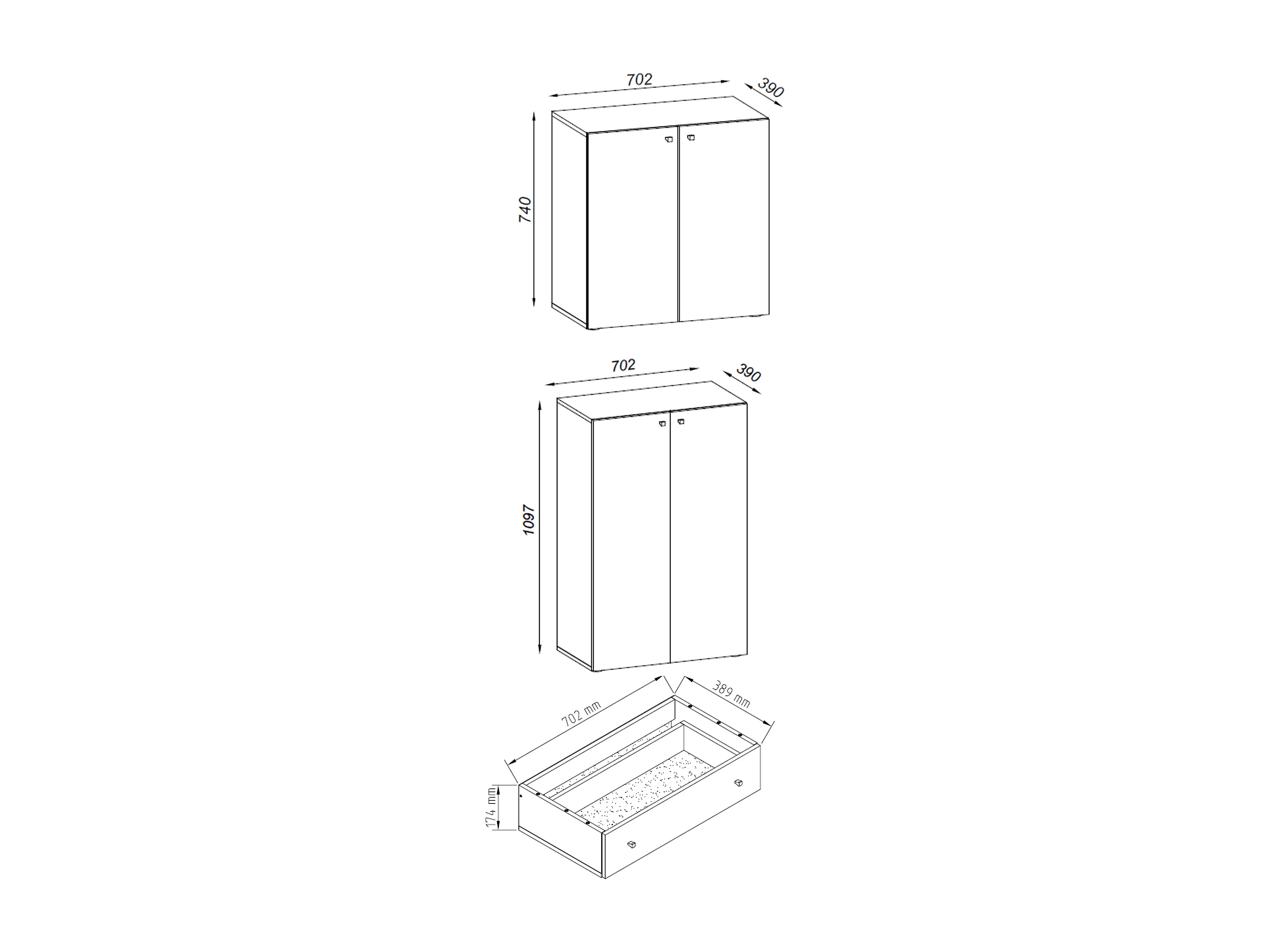 Office cabinet Lona Gray H. 200 x W. 70 x D. 39 cm