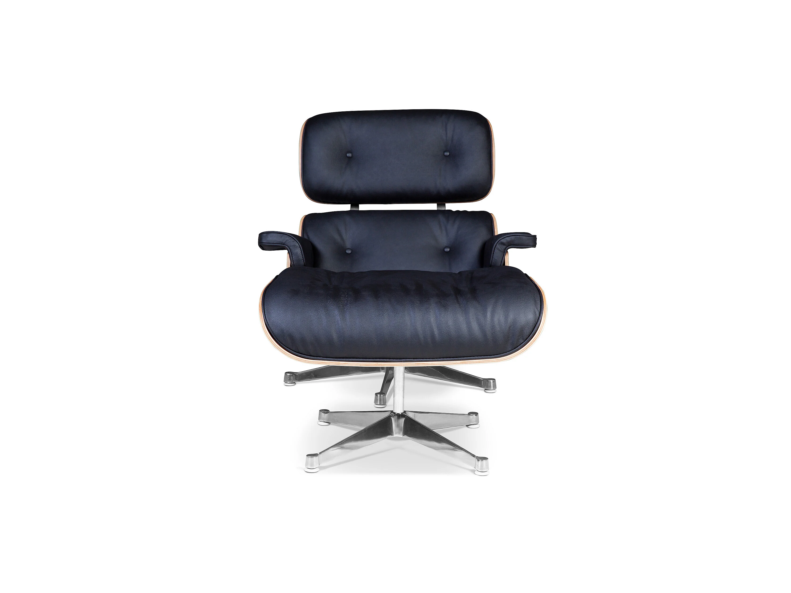 Long Chair & Ottoman Cuir Premium - Noyer Blanc