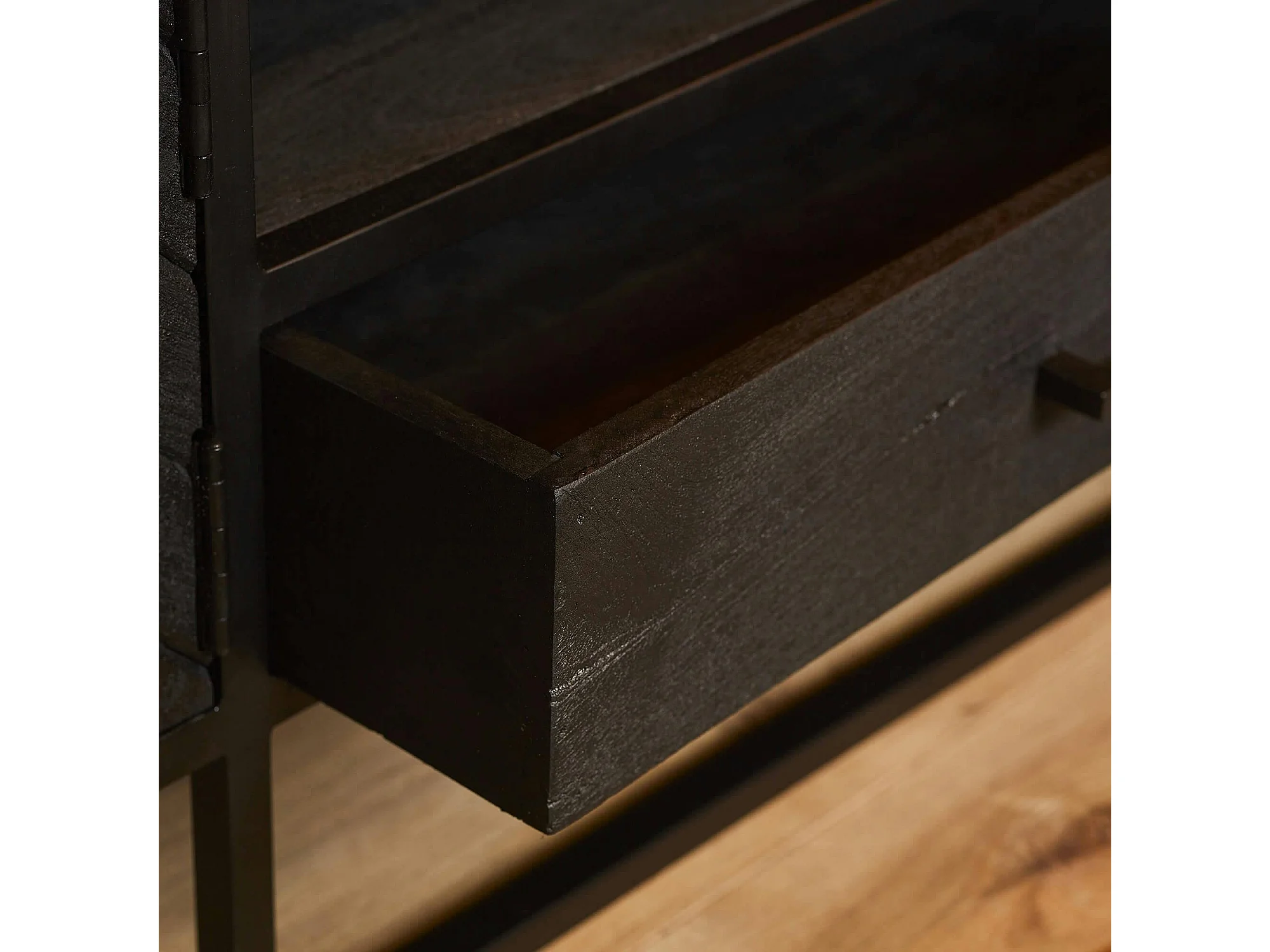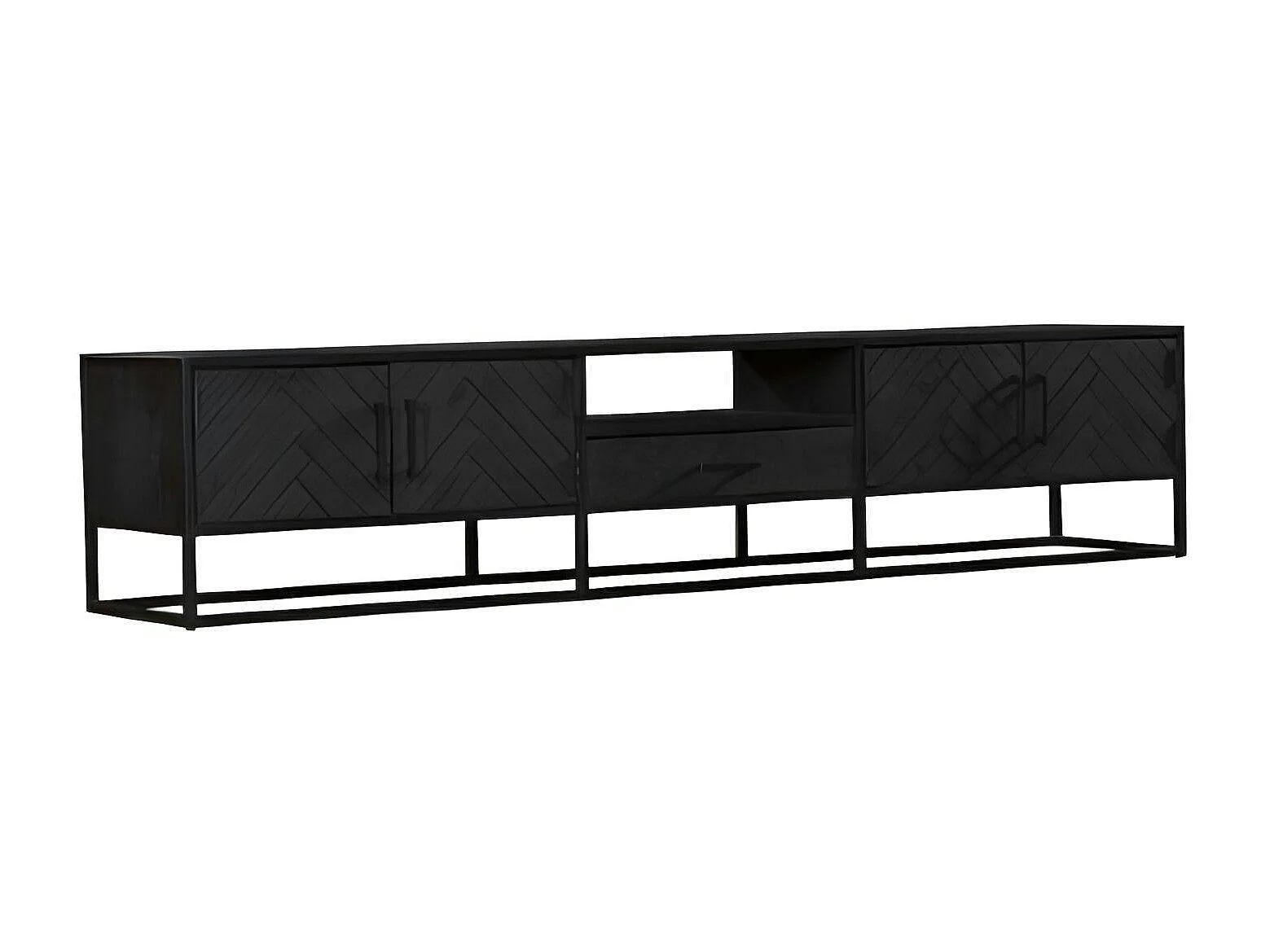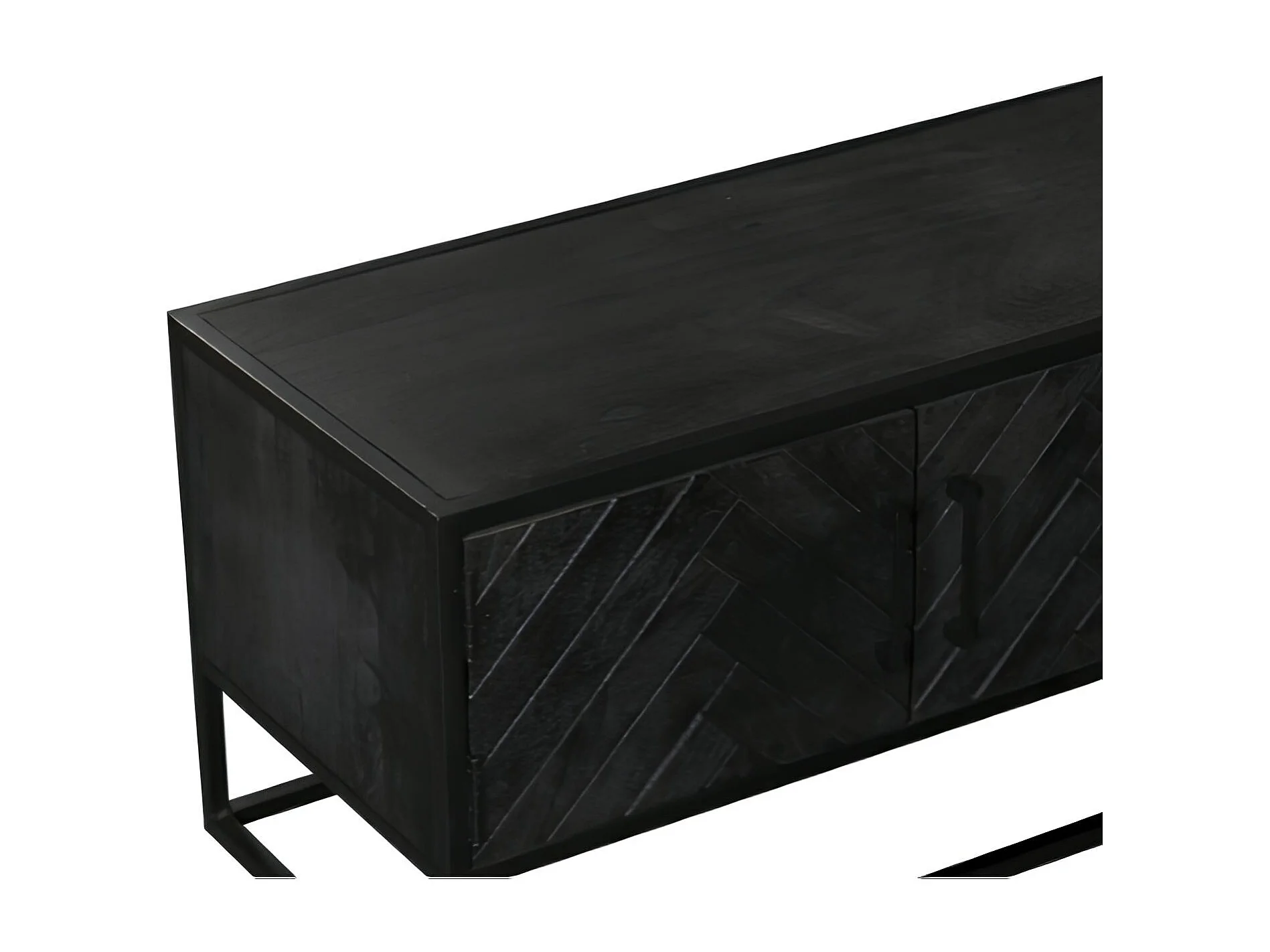 Long meuble TV bois noir 4 portes motif chevron ALVERA