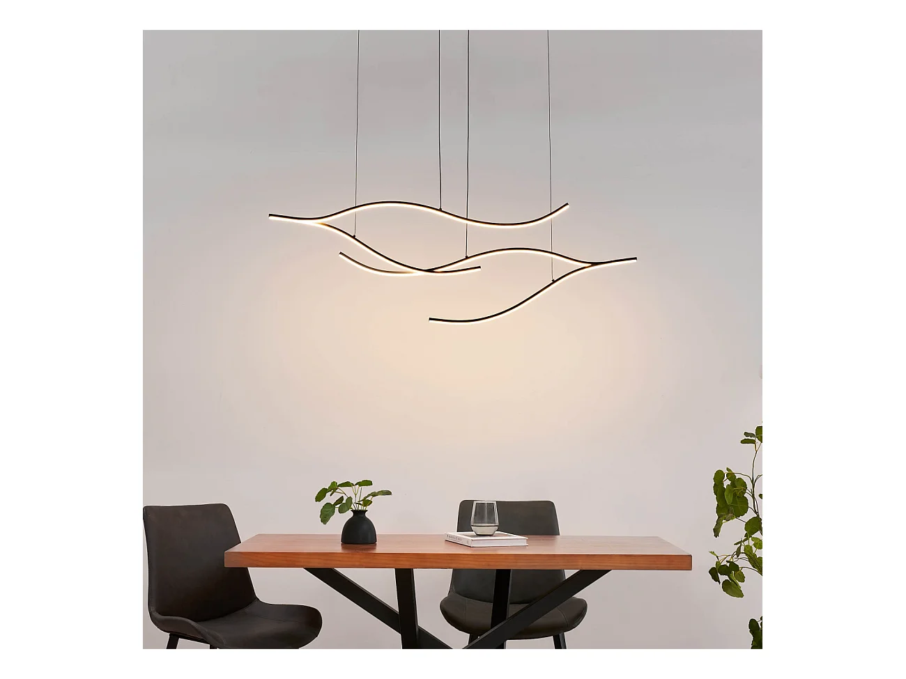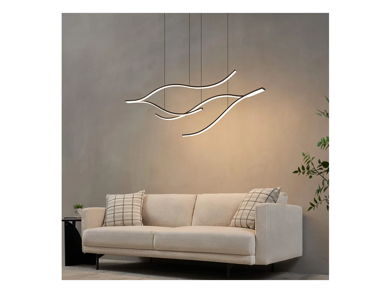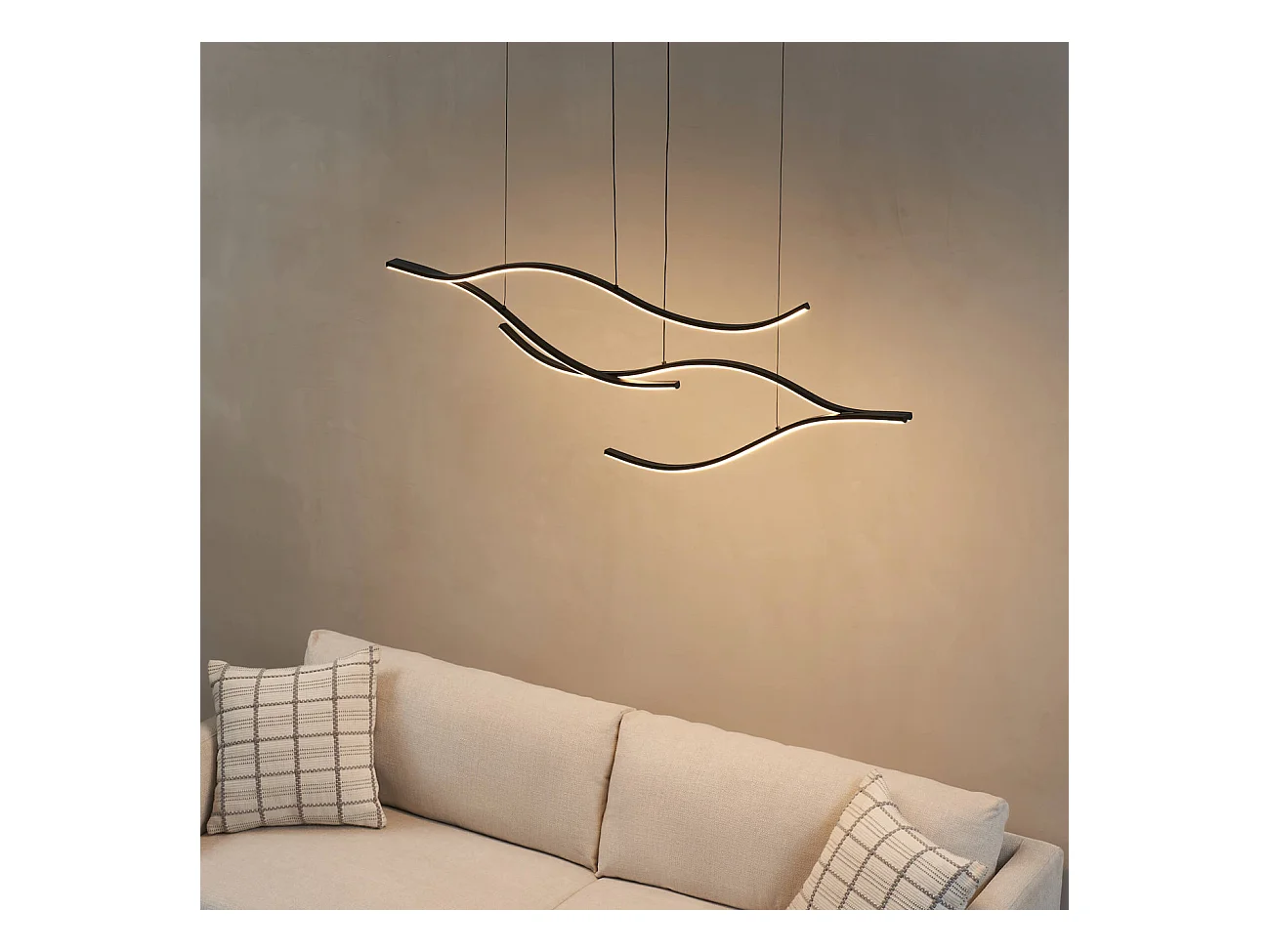 Longue suspension LED dimmable vagues noires lumineuses 112 cm - Portofino