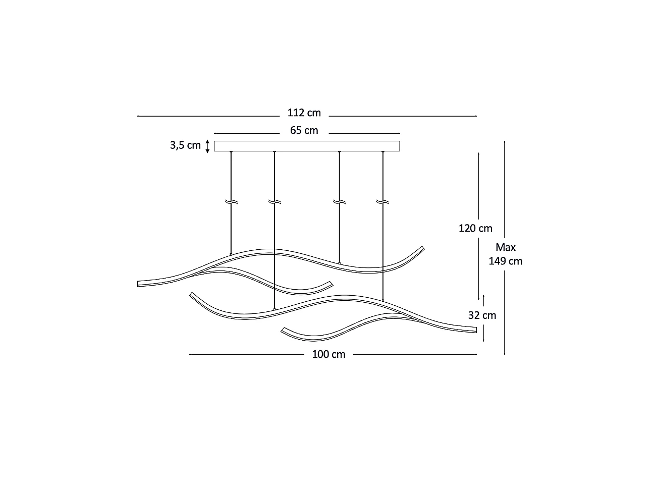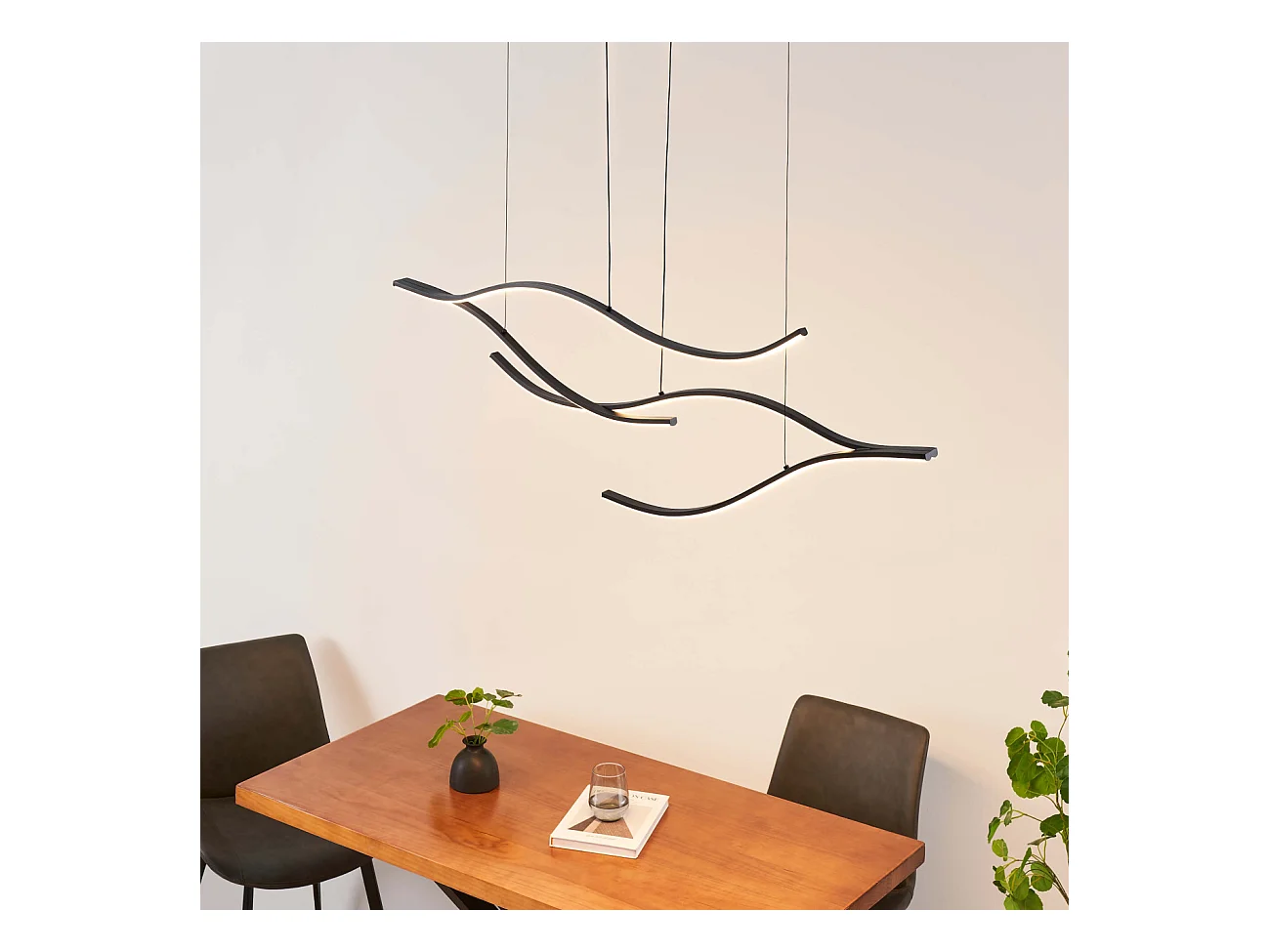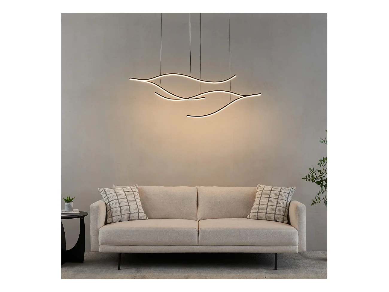 Longue suspension LED dimmable vagues noires lumineuses 112 cm - Portofino