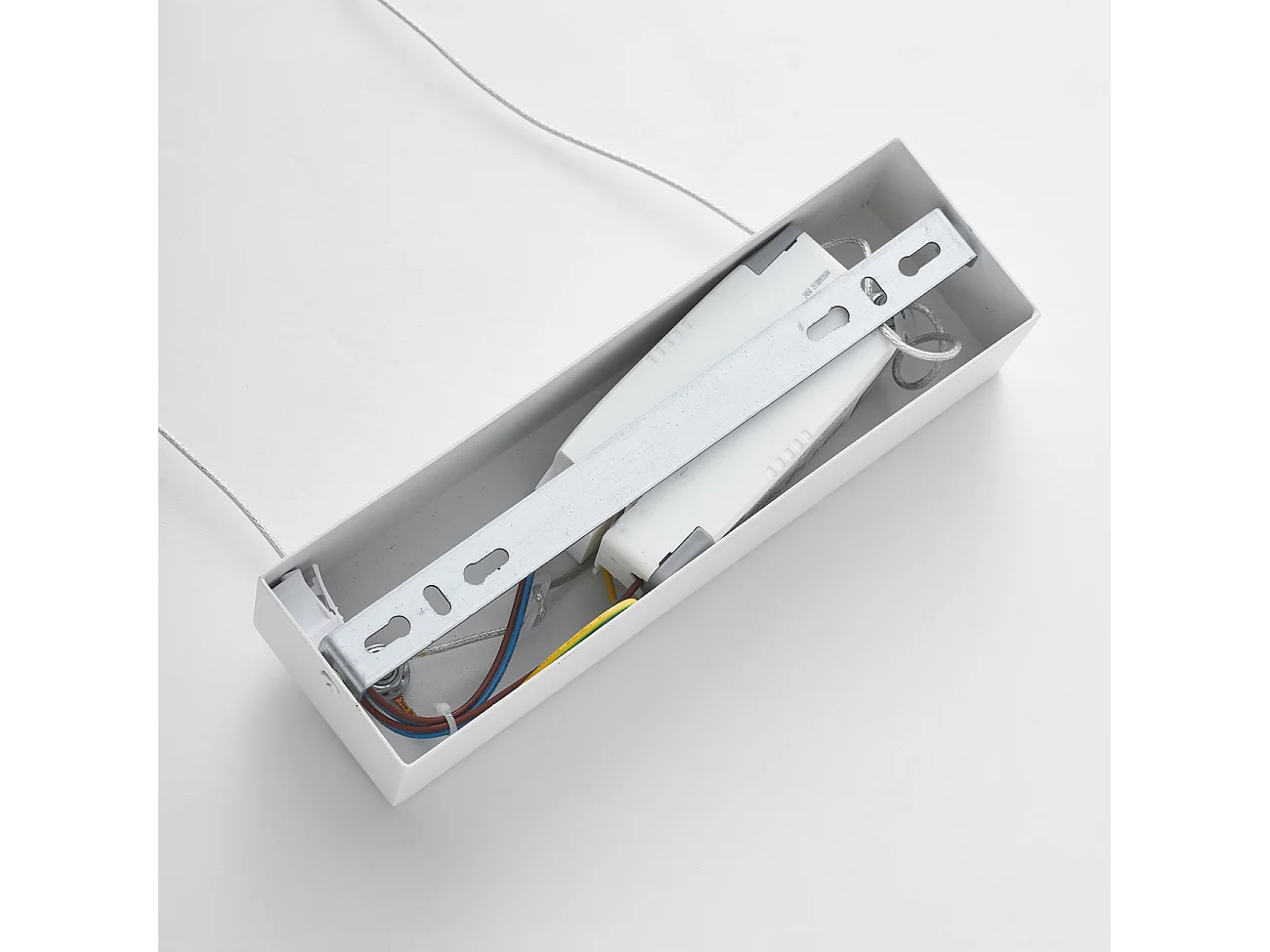 Longue suspension blanche linéaire LED dimmable spots orientables - Aniska