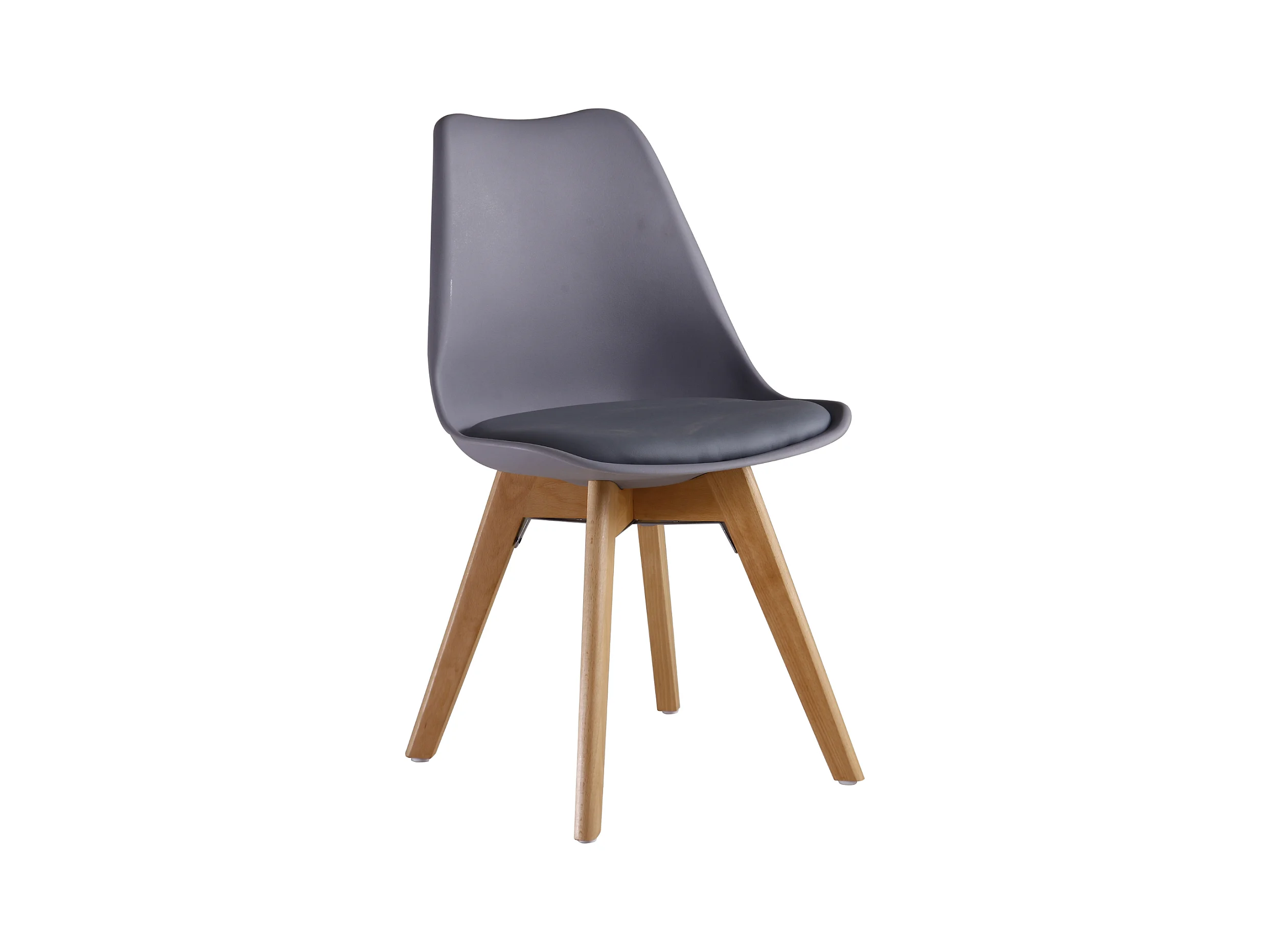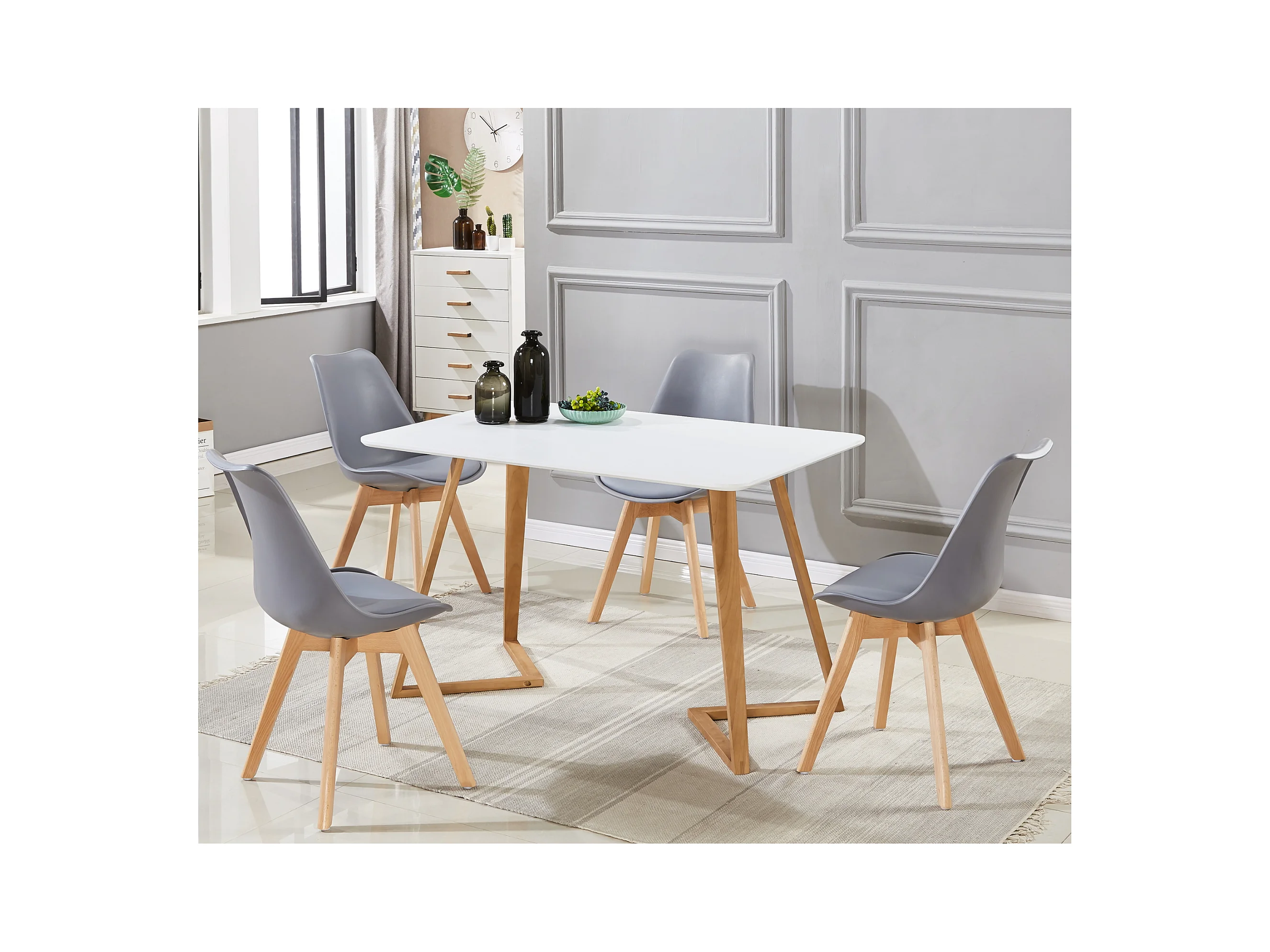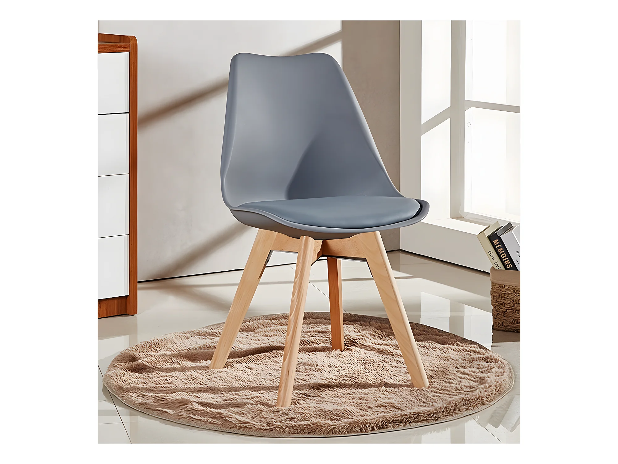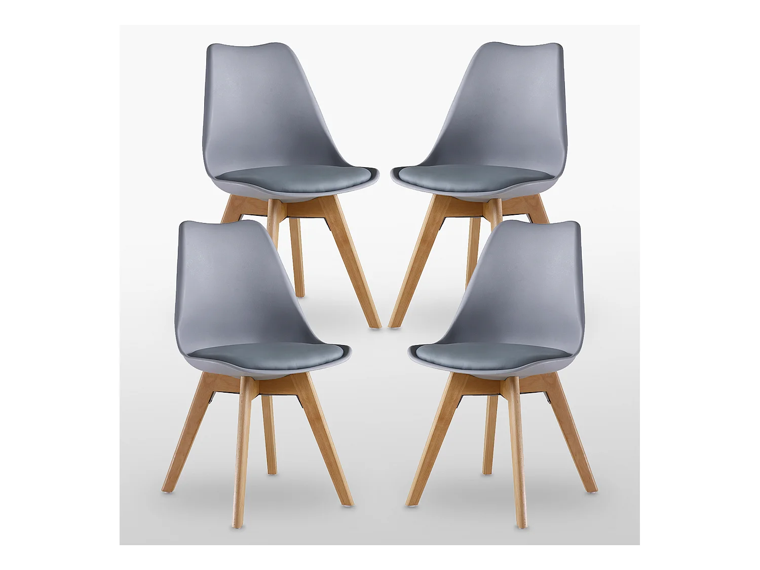 Ensemble de 4 chaises de salle à manger Lorenzo avec siège élégant en similicuir et pieds en bois massif - Parfait pour la salle à manger, le salon - Gris