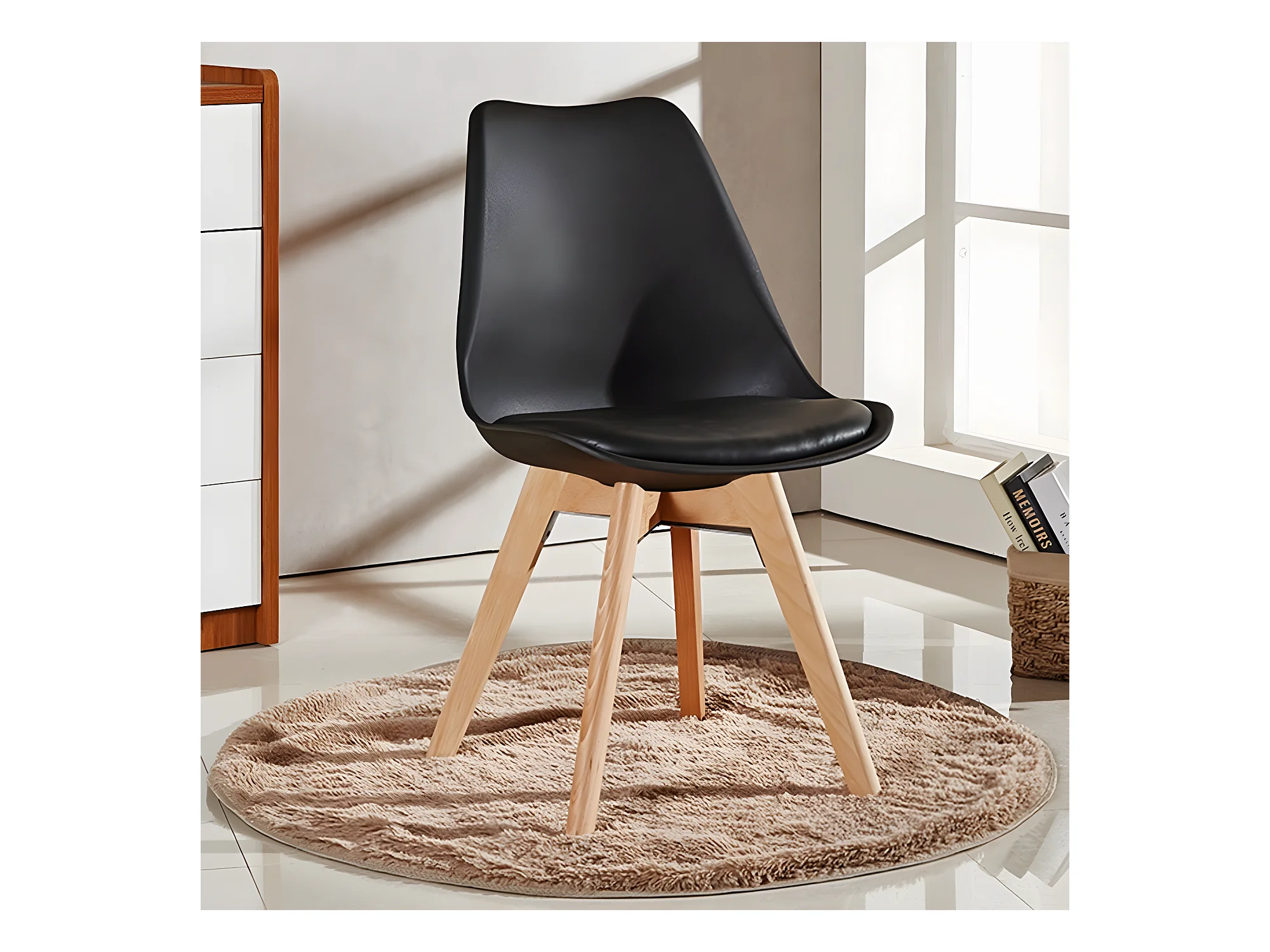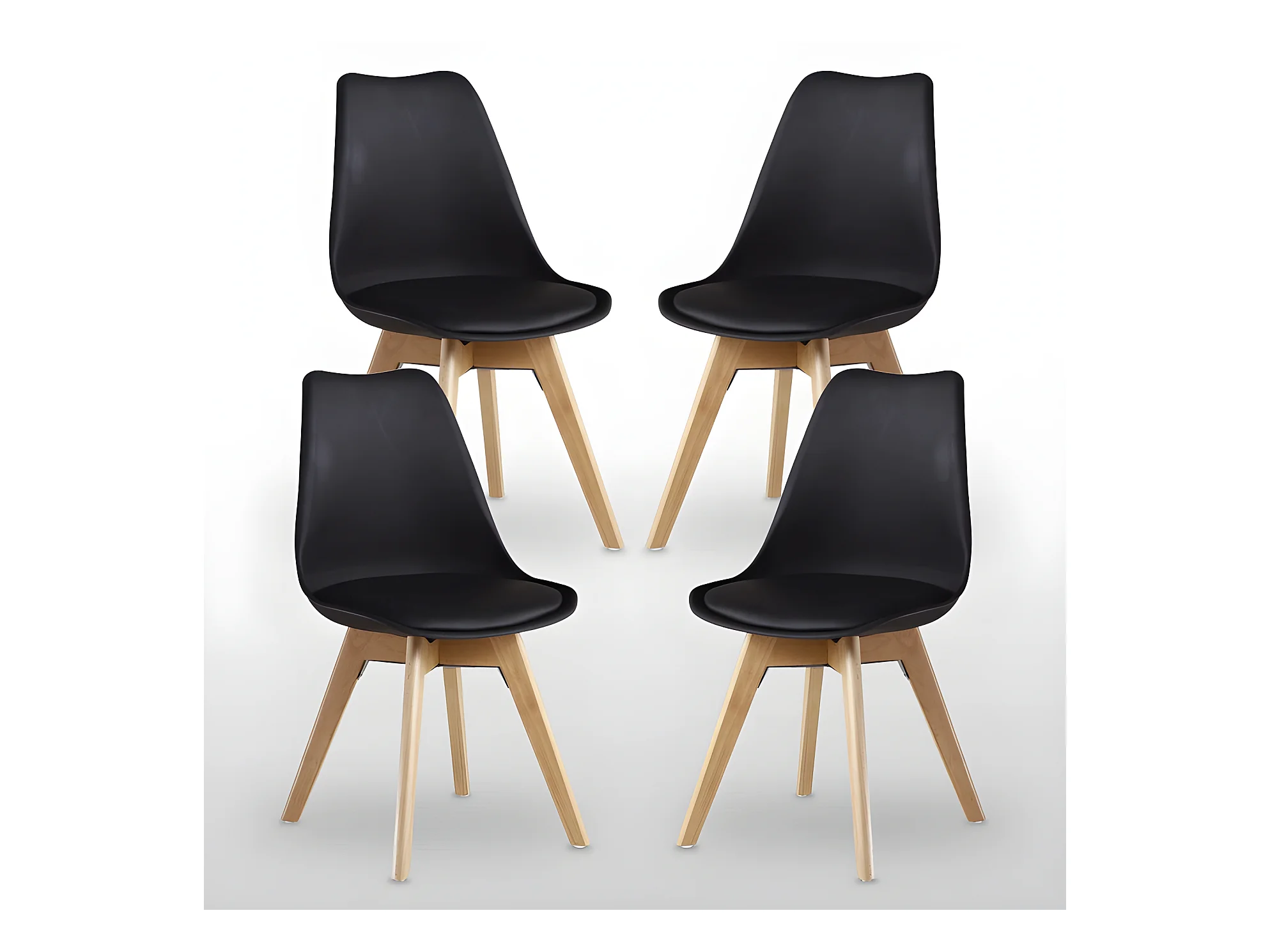 Ensemble de 4 chaises de salle à manger Lorenzo avec siège en similicuir élégant et pieds en bois massif - Parfait pour la salle à manger, le salon - Noir