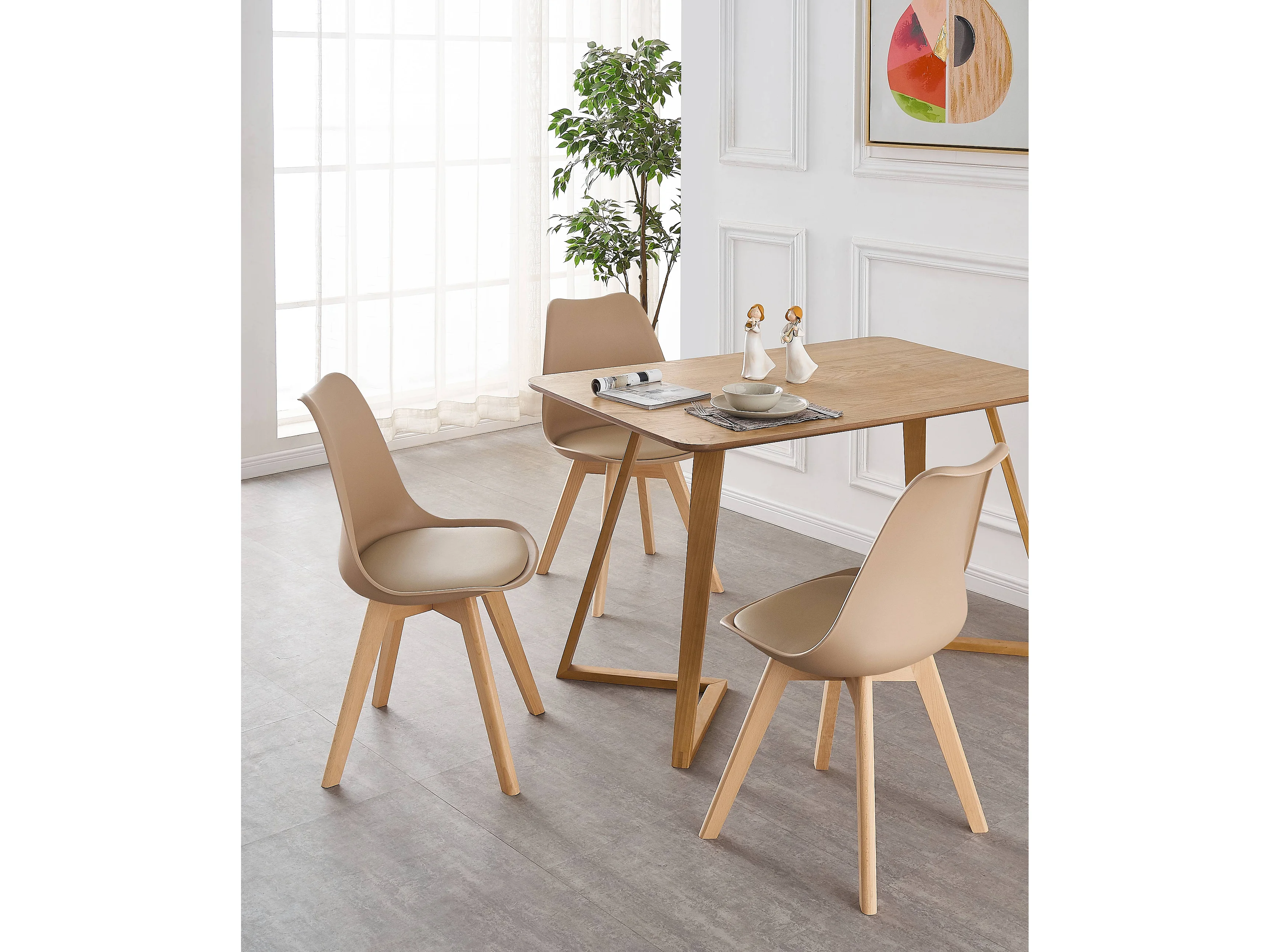 LORENZO - Lot de 6 Chaises Scandinaves - Assise Rembourrée - Beige
