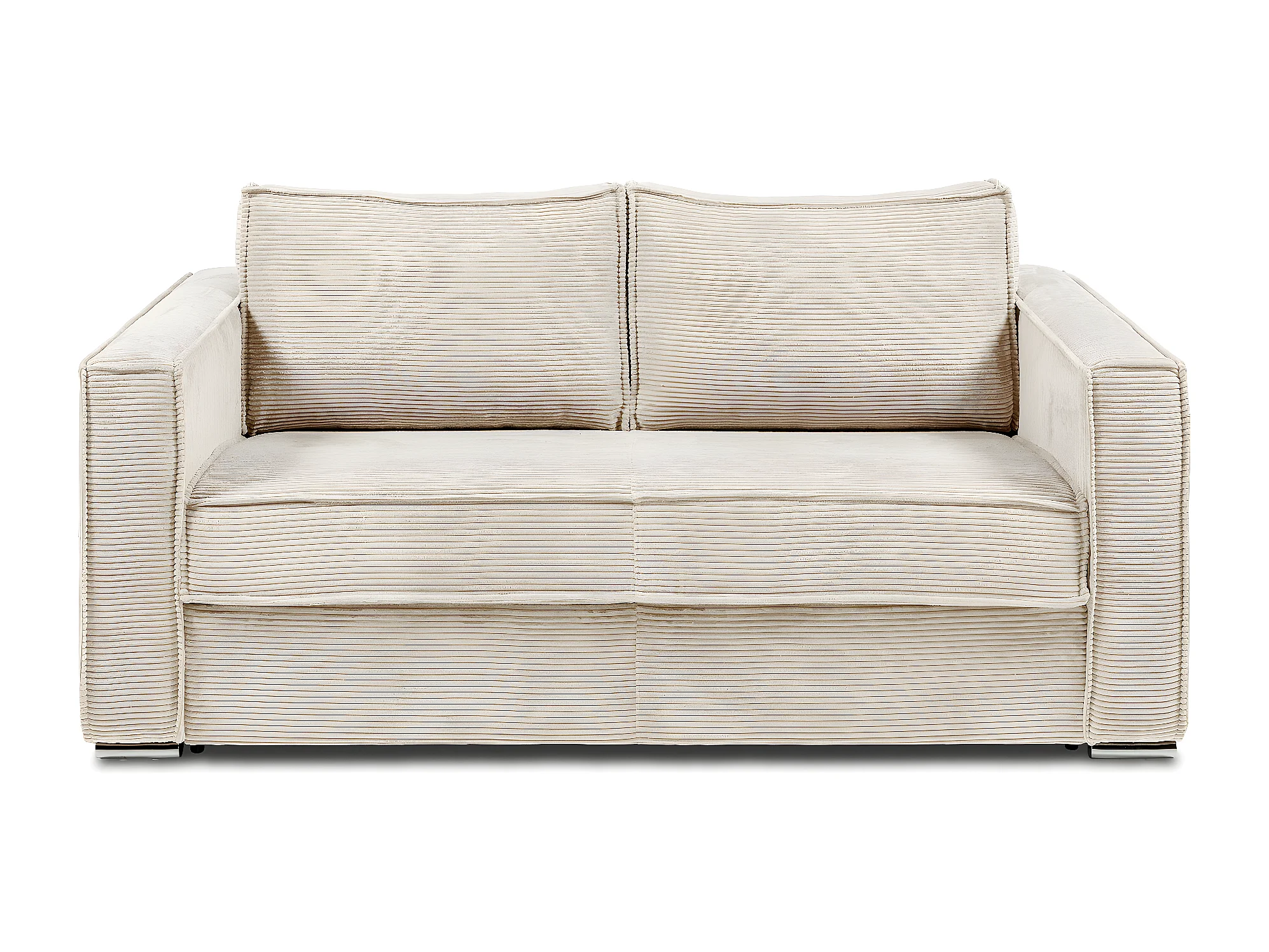 Canapé 3 places convertible express en velours côtelé beige avec assise mémoire de forme - Couchage 140 cm - Matelas 14 cm LORETO