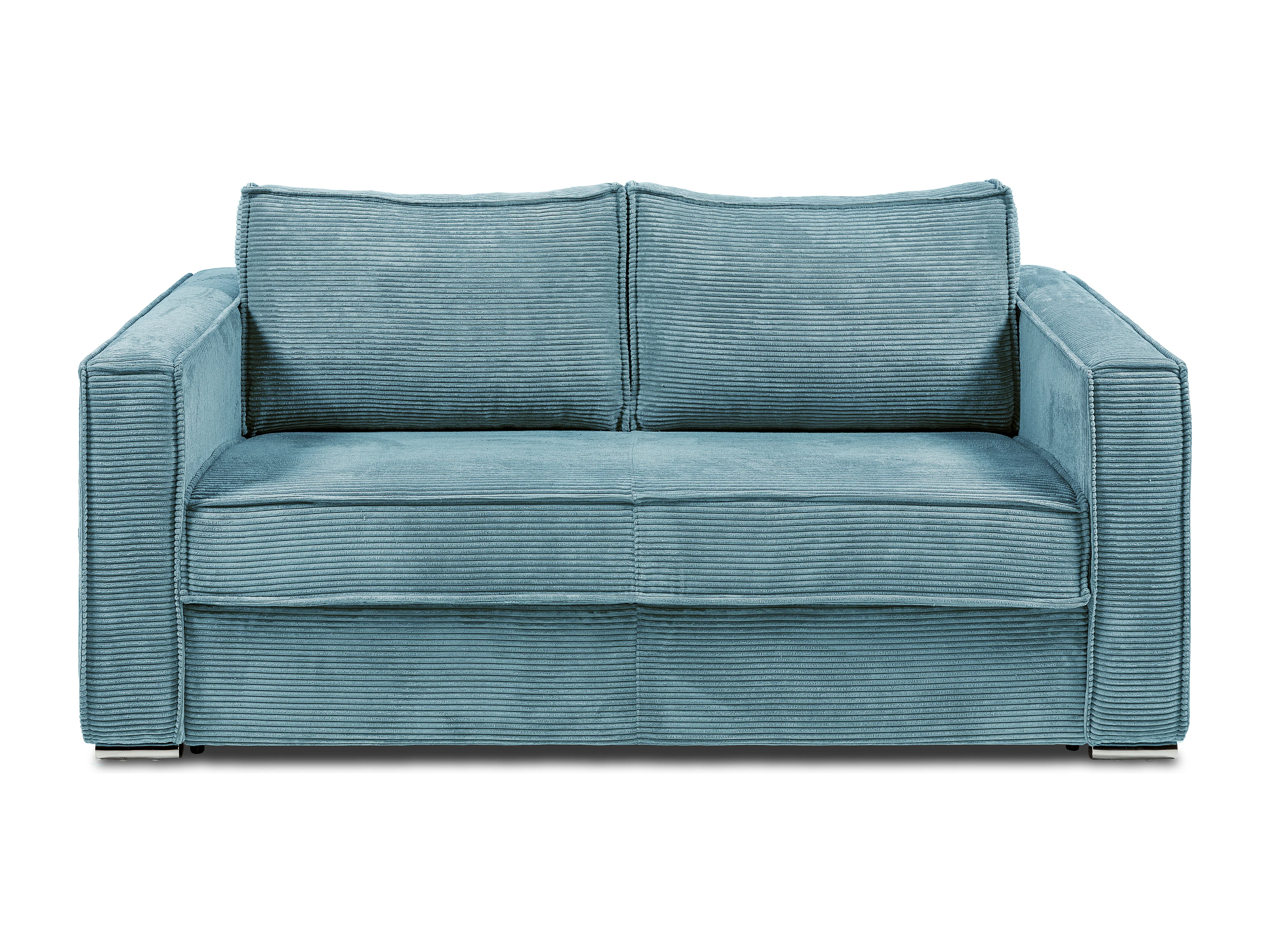 Canapé 3 places convertible express en velours côtelé bleu turquoise avec assise mémoire de forme - Couchage 140 cm - Matelas 14 cm LORETO