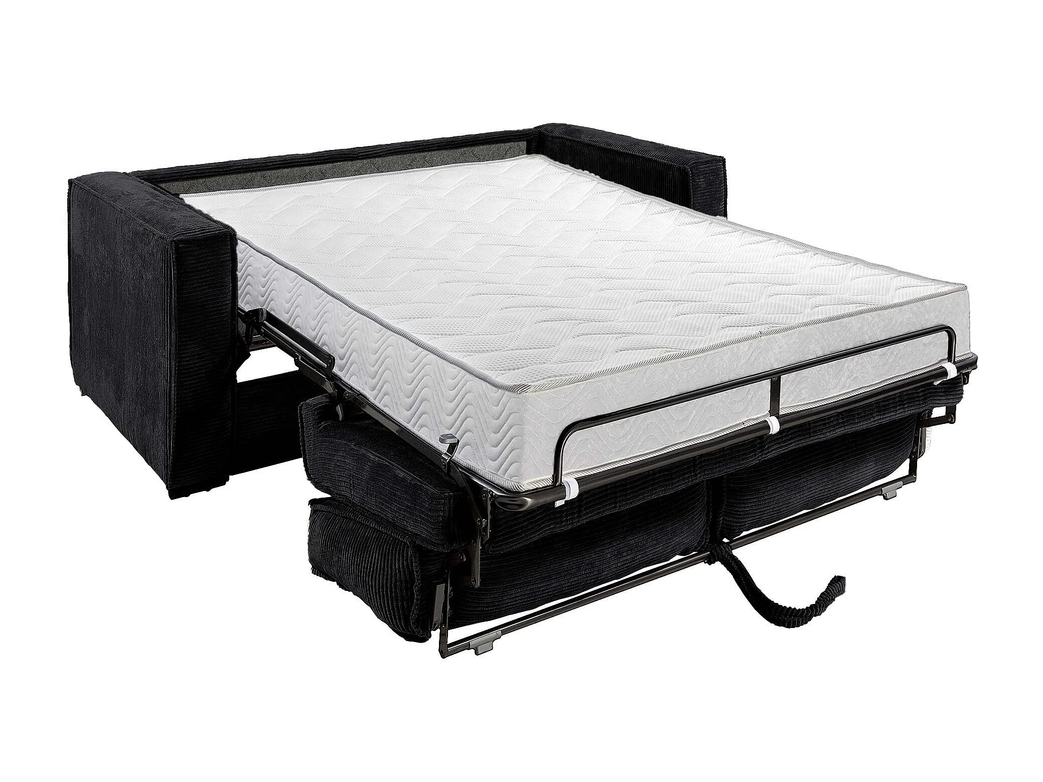 Canapé 3 places convertible express en velours côtelé noir - Couchage à lattes larges 140 cm - Matelas 18 cm LORETO