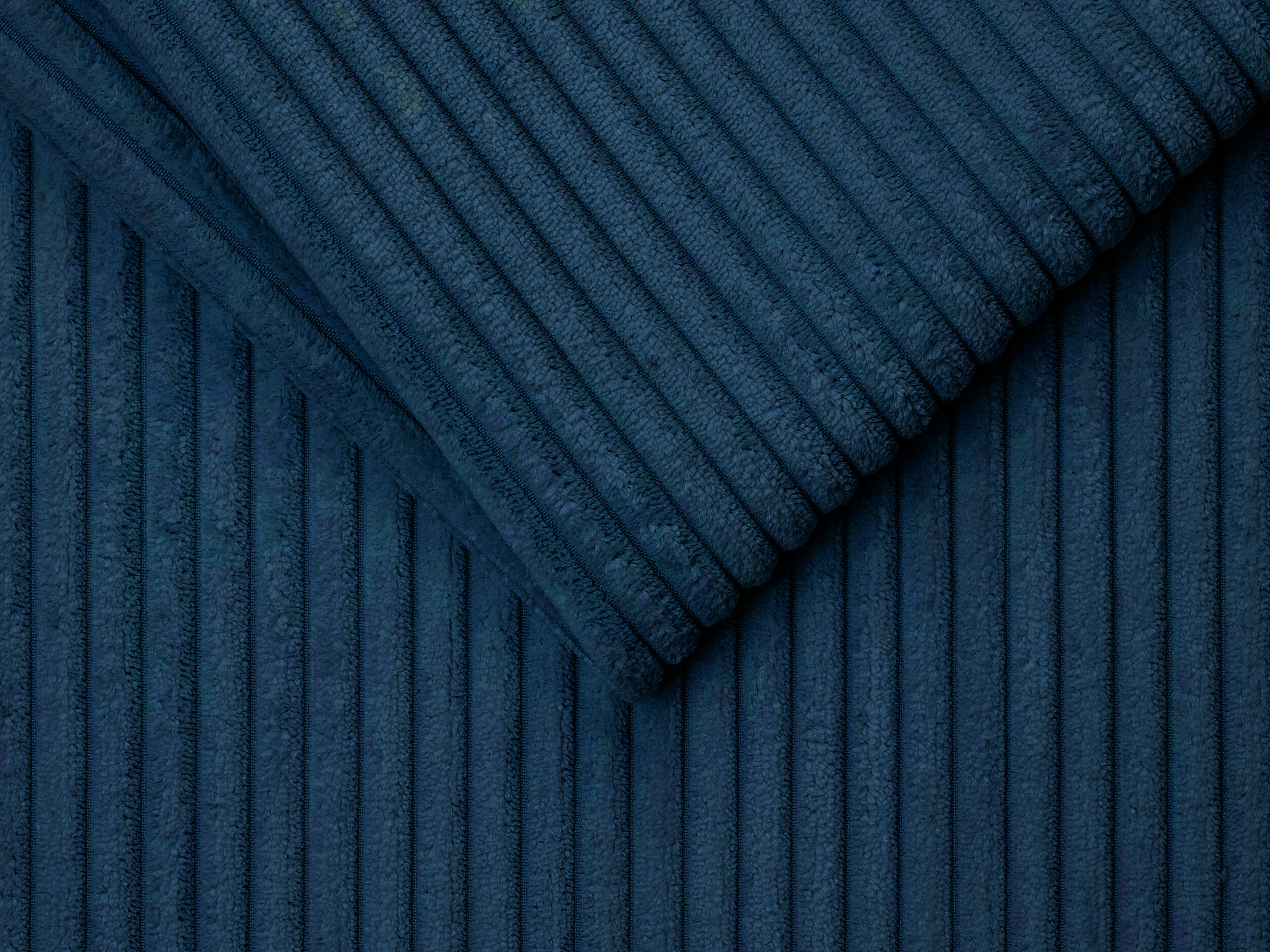 Canapé 4 places convertible express en velours côtelé bleu nuit avec assise mémoire de forme - Couchage à lattes larges 160 cm - Matelas 22 cm mémoire de forme LORETO