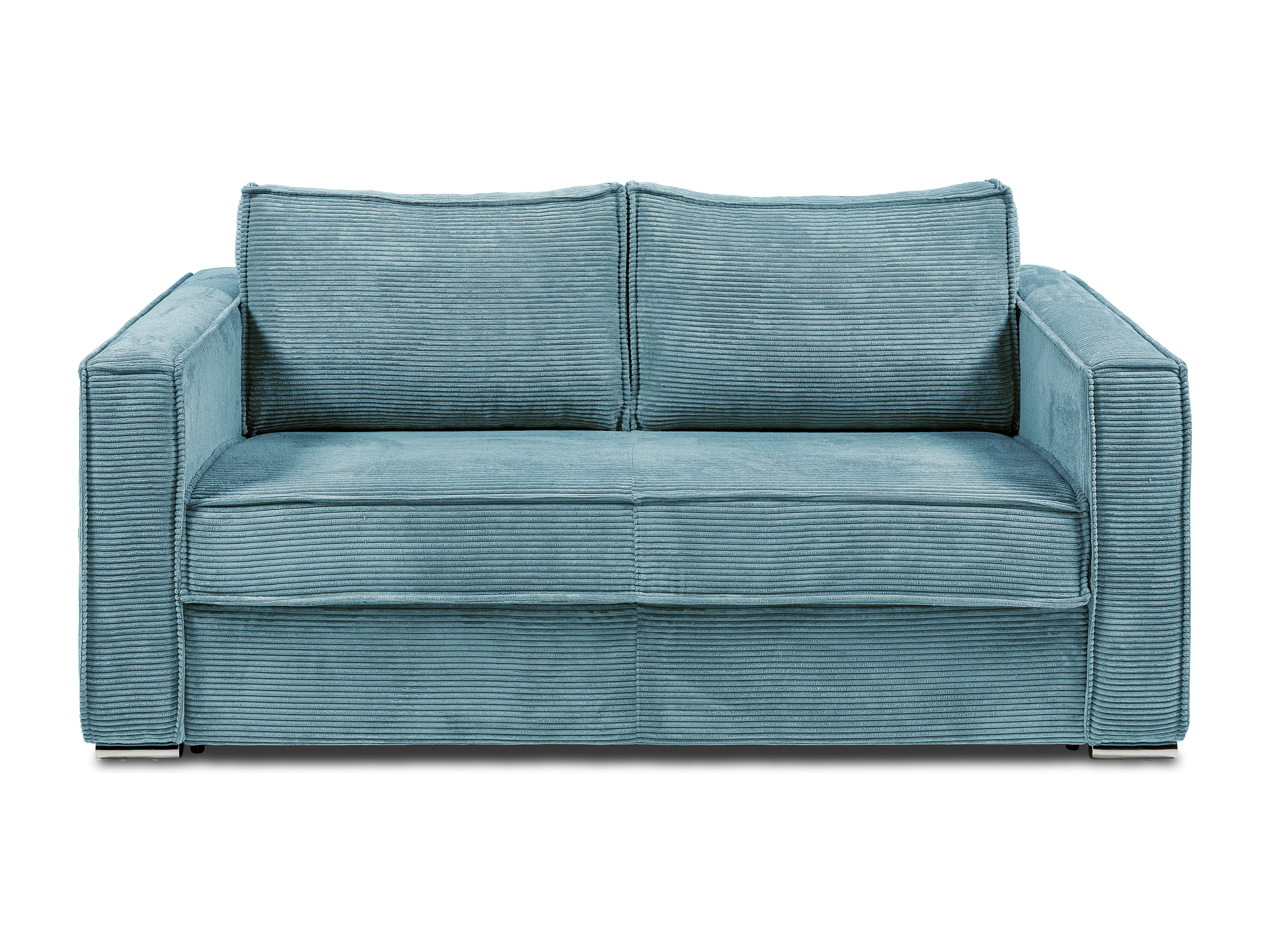 Canapé 4 places convertible express en velours côtelé bleu turquoise avec assise mémoire de forme - Couchage à lattes larges 160 cm - Matelas 22 cm mémoire de forme LORETO