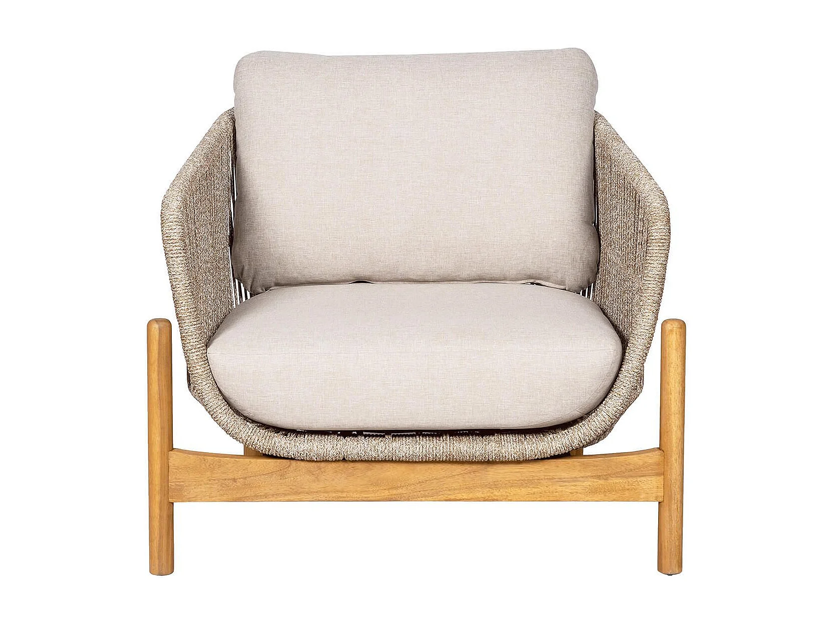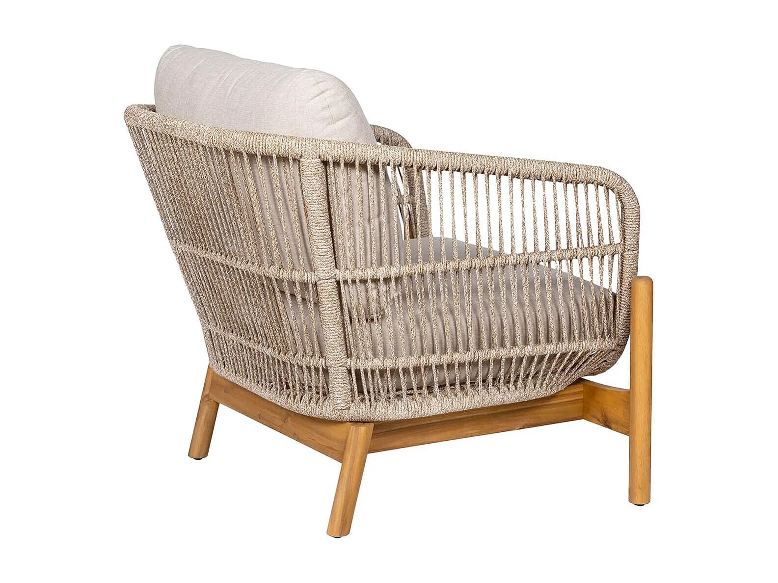 LORIENA - Fauteuil de Jardin en Acacia et Corde Beige avec Coussins