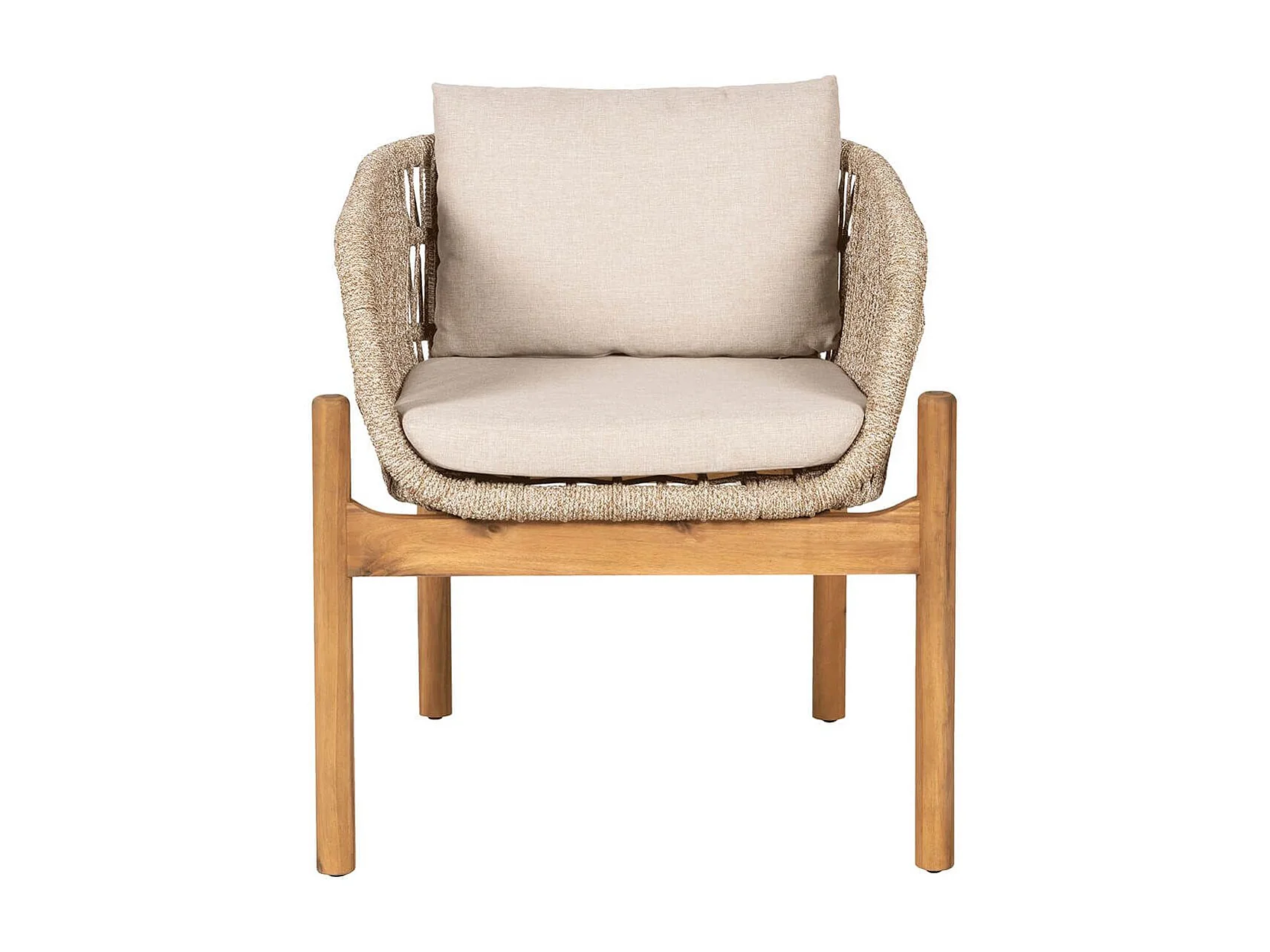 LORIENA - Lot de 2 Fauteuils de Table de Jardin en Acacia et Corde Beige avec Coussins