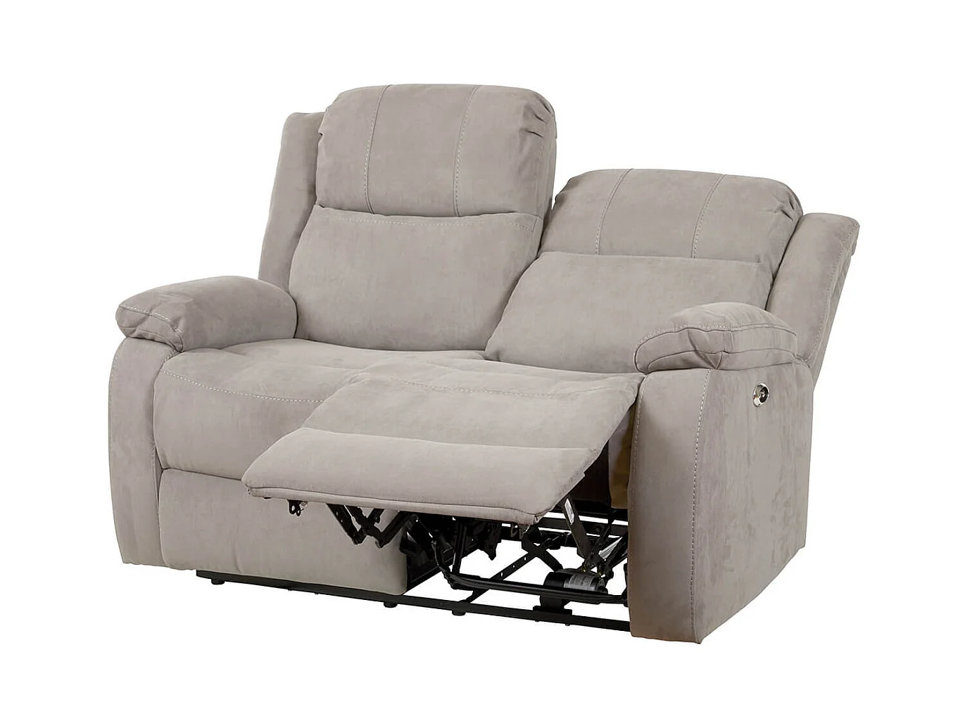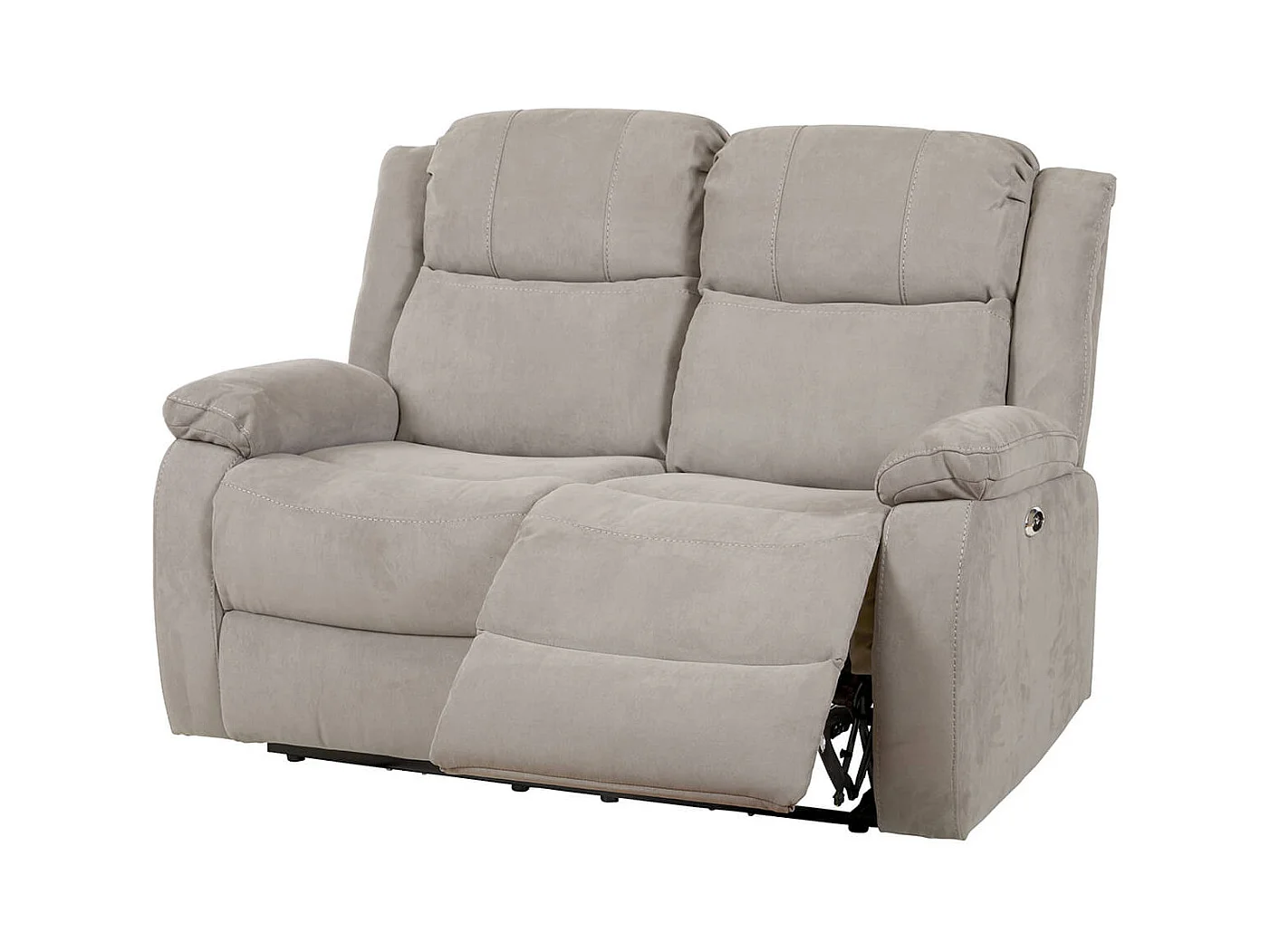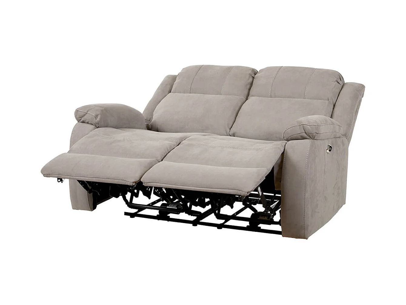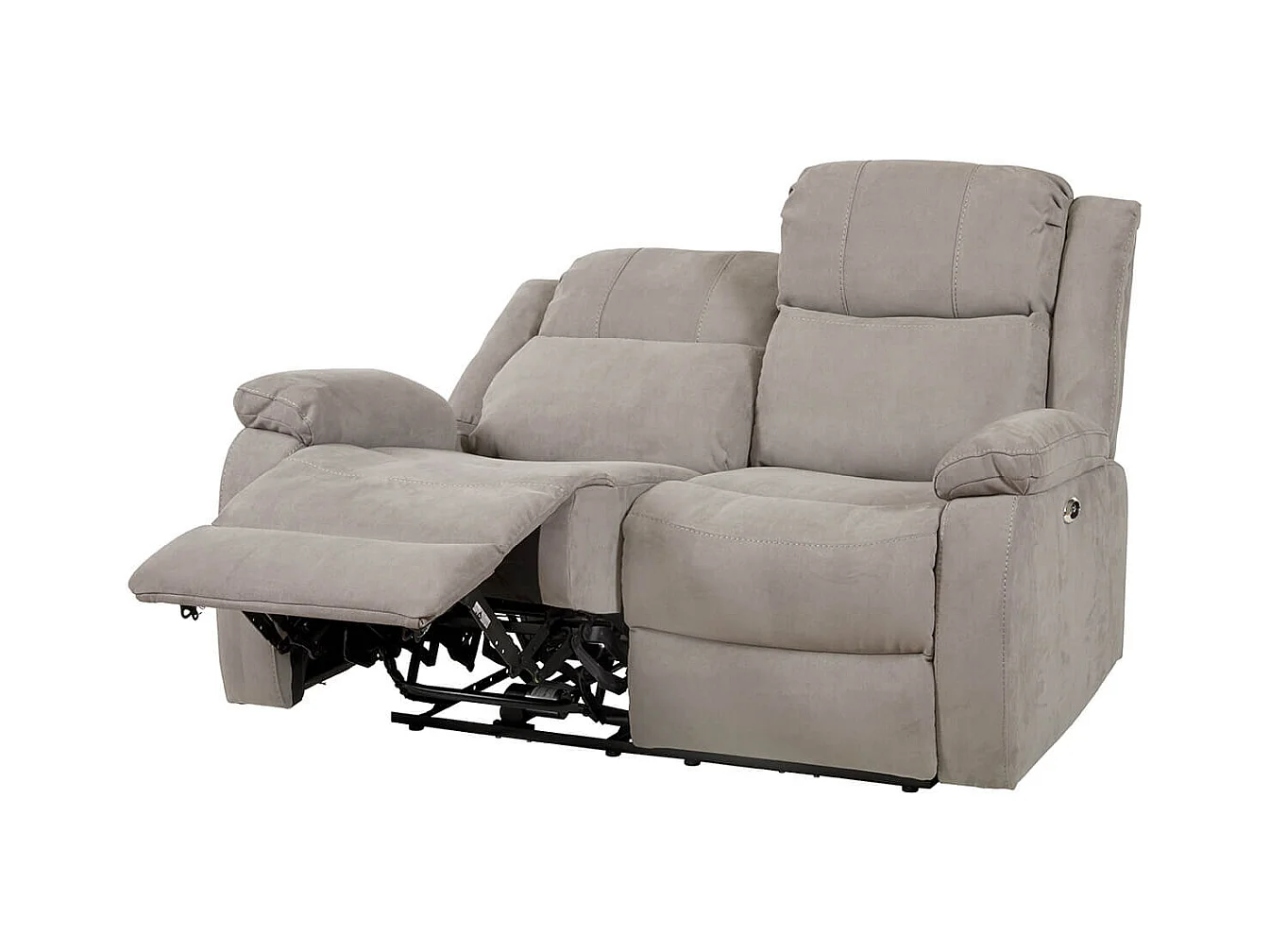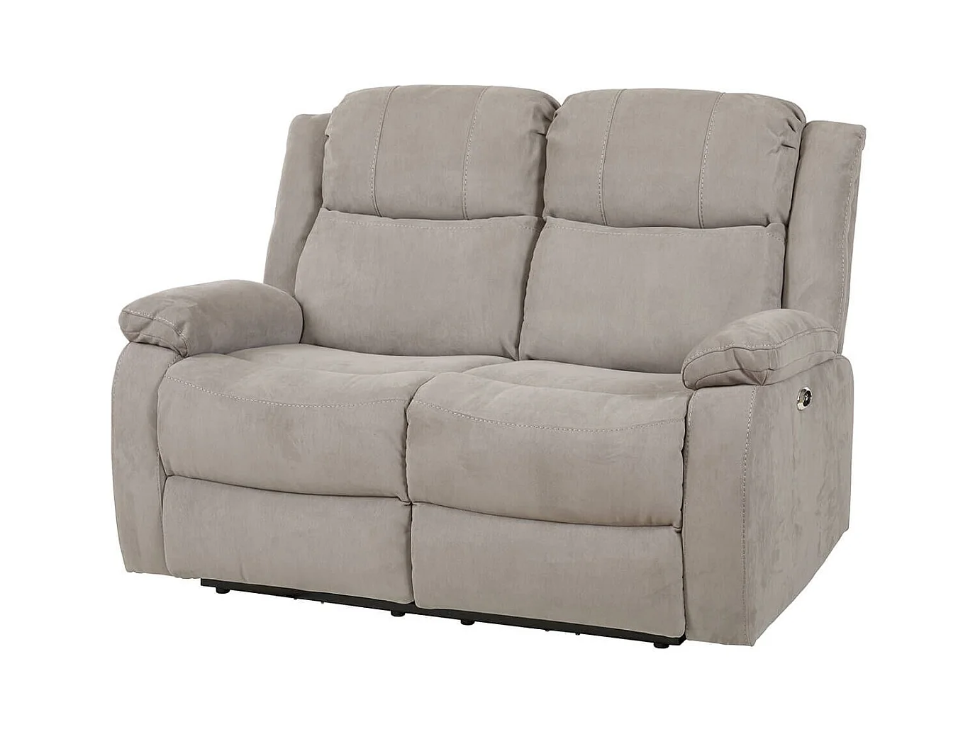 LORYS - Canapé Relax Electrique 2 Places Tissu Gris Clair