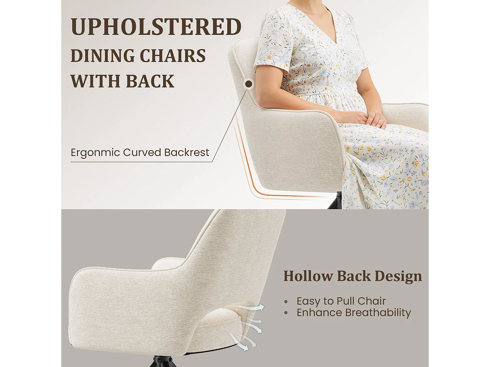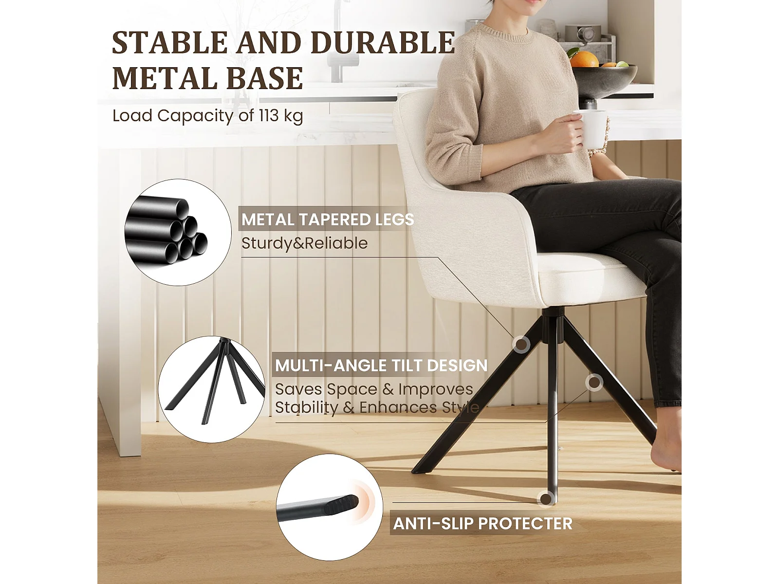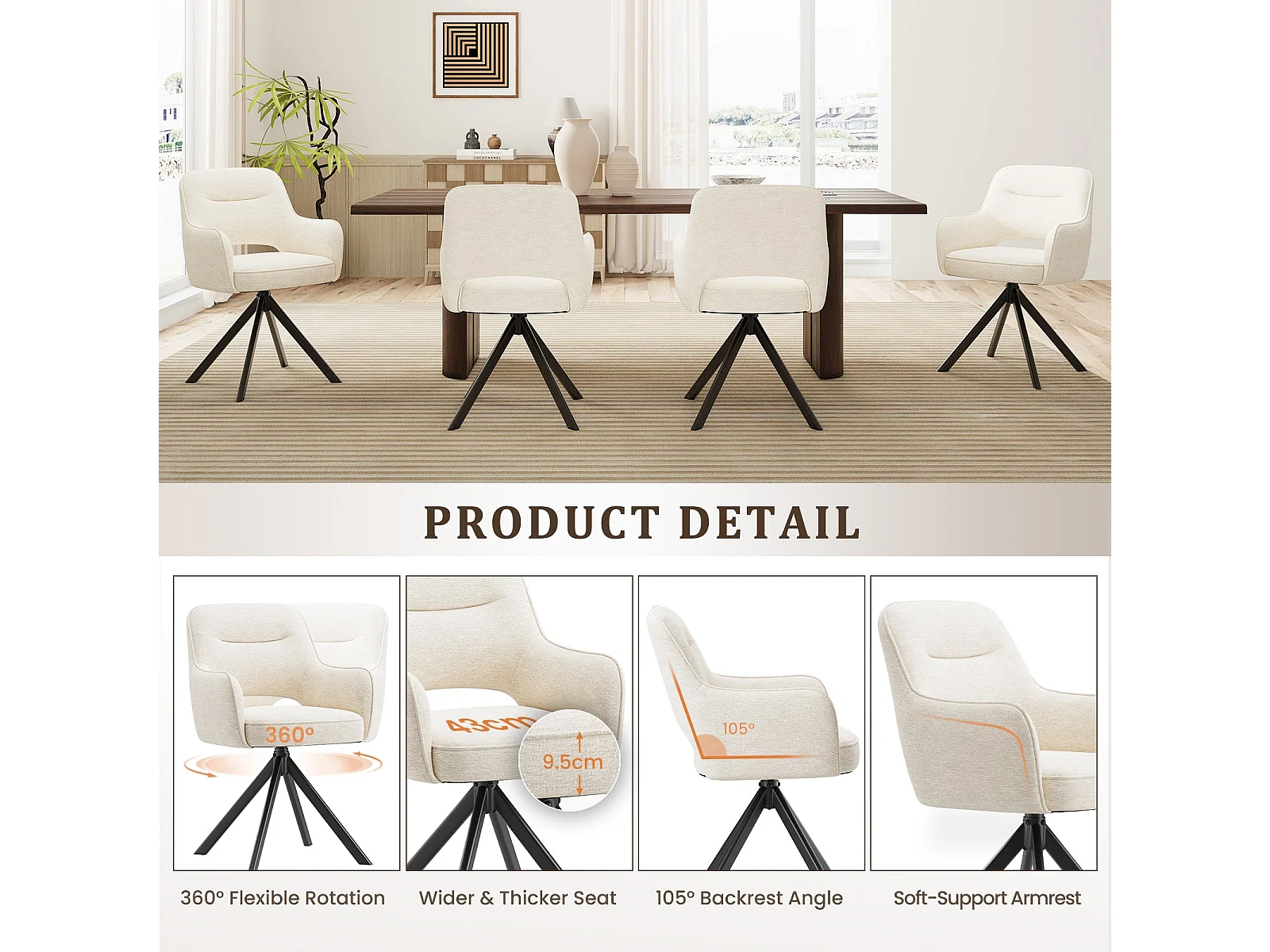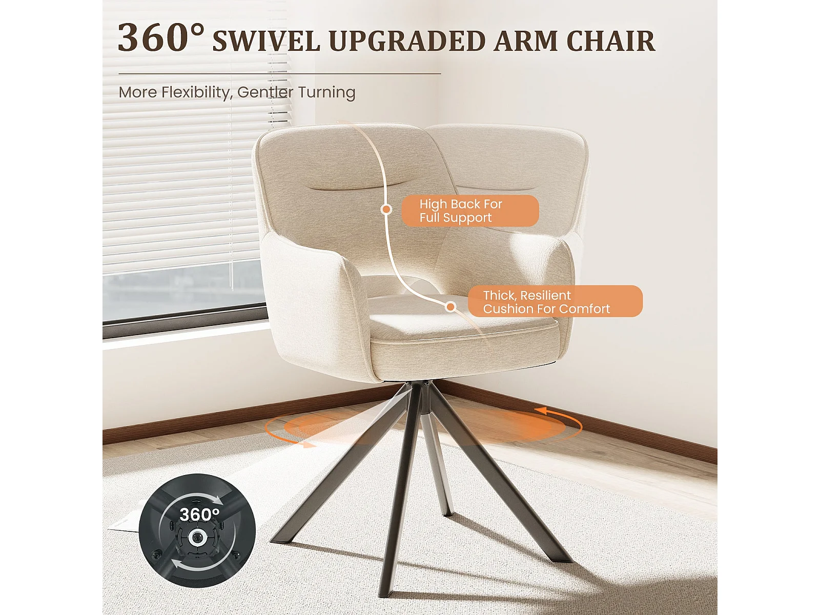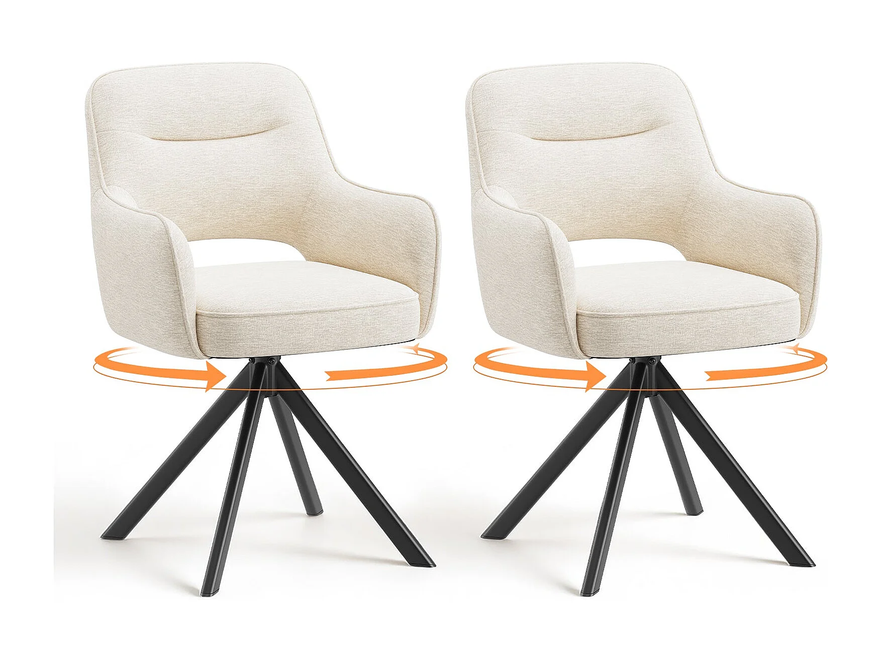 Lot 2 Chaise pivotante premium avec demi-accoudoirs - Base métallique haute stabilité - Beige