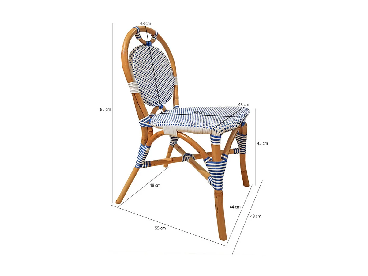 Lot 2 chaises bistrot en rotin naturel cannage bleu et blanc - PIGALLE